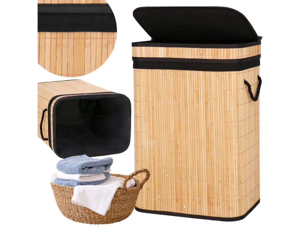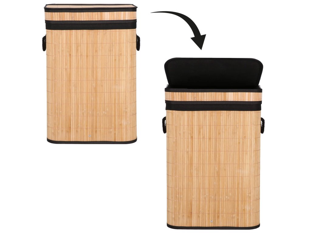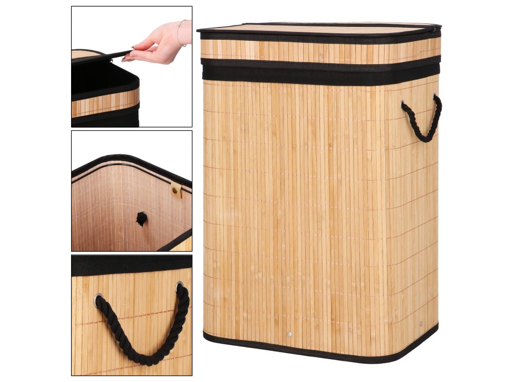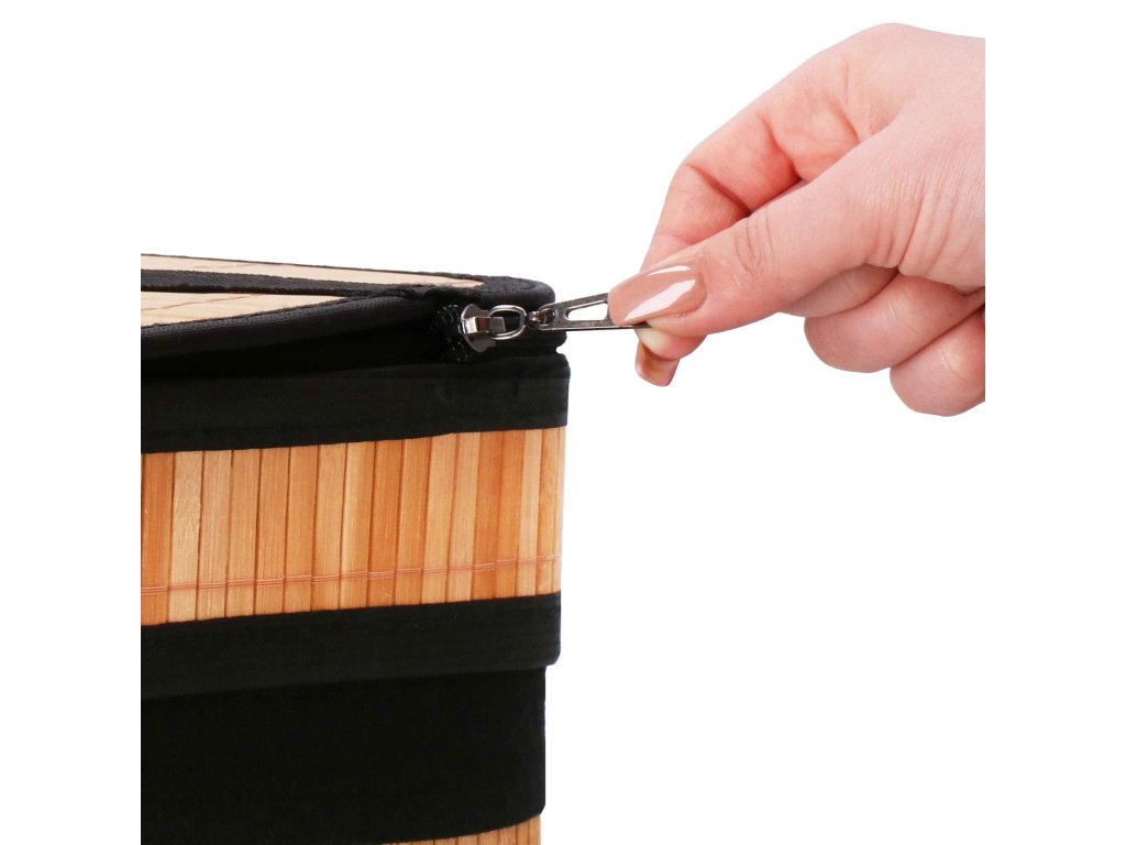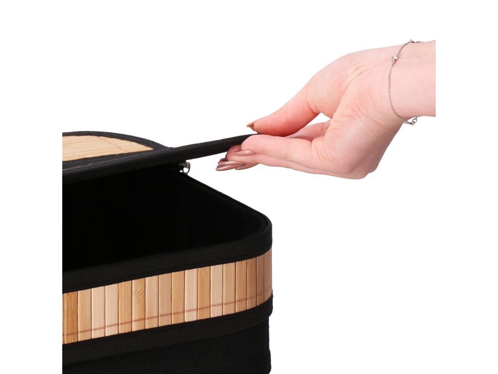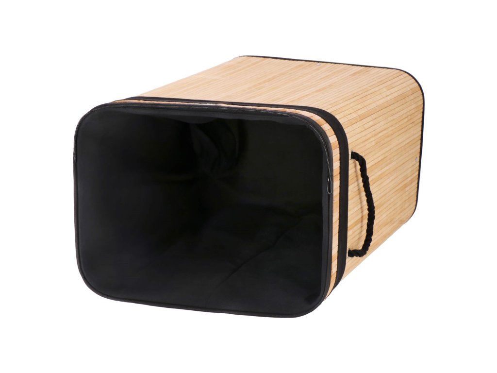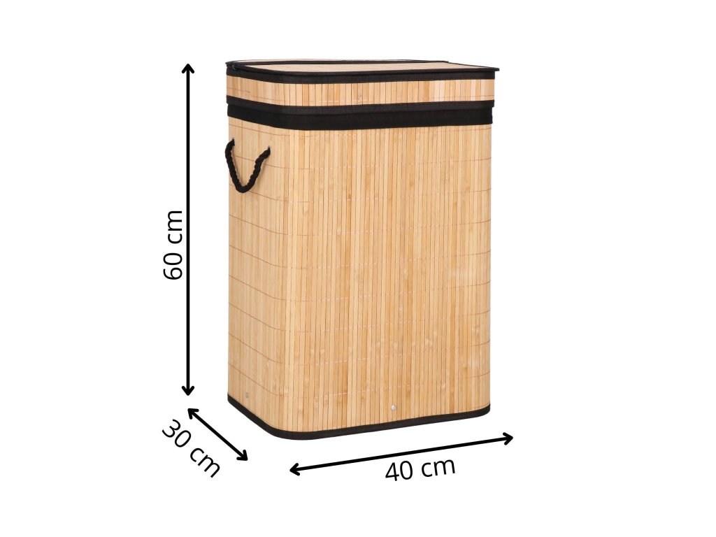 - Elemek a készletben (6 elem): bambusz test, MDF alj, felső megerősítés fémhuzalból, szövet belső rész, bambusz fedél - 2 elem