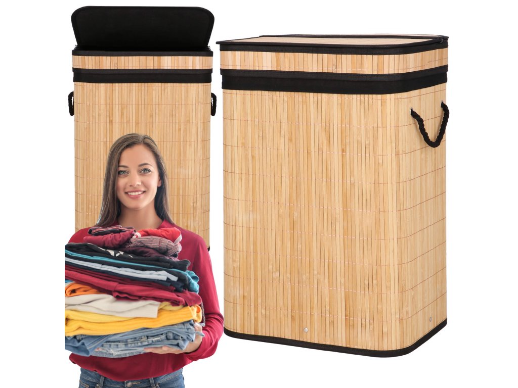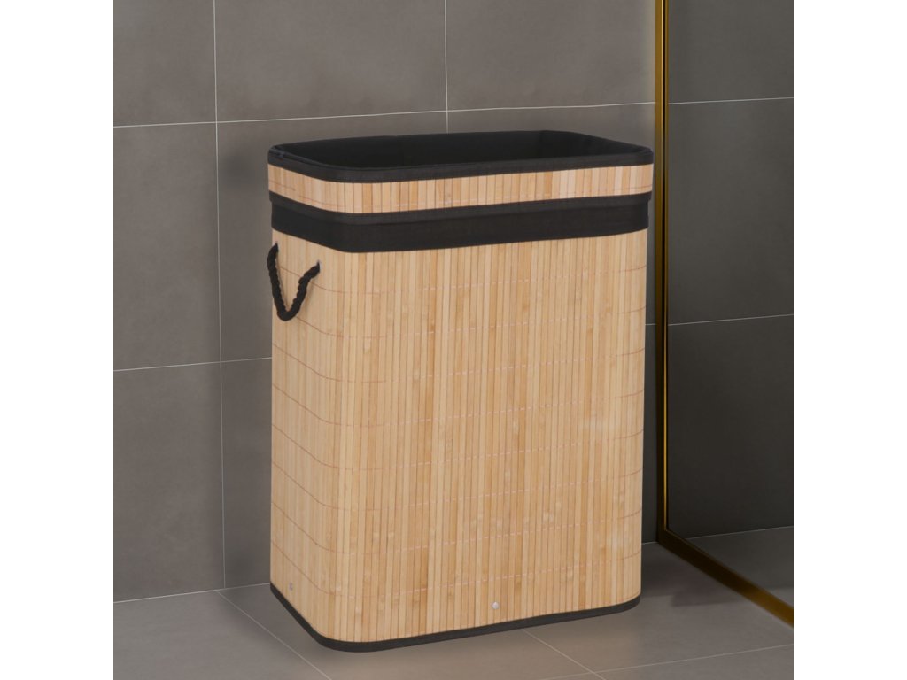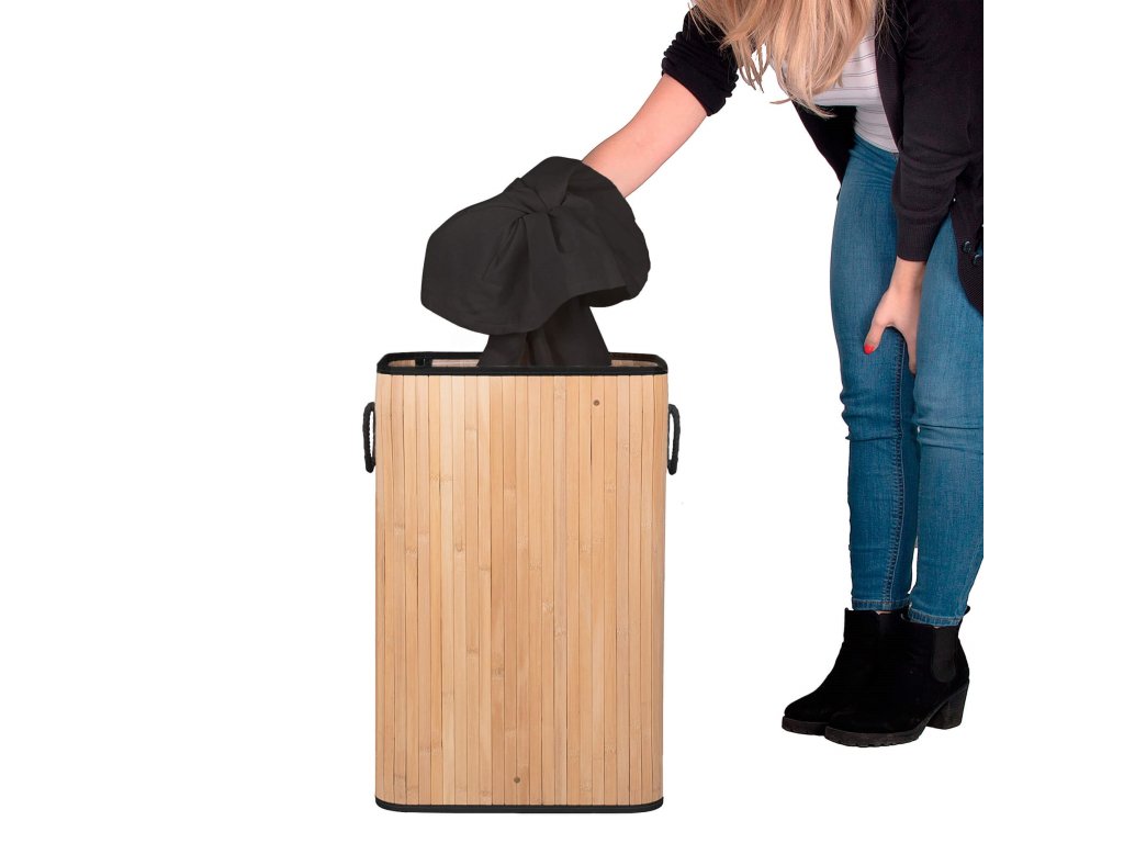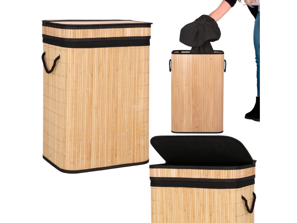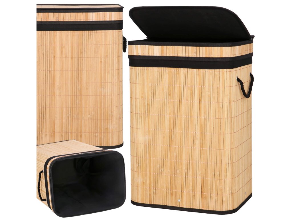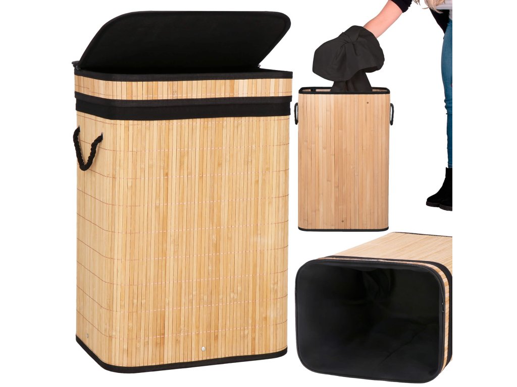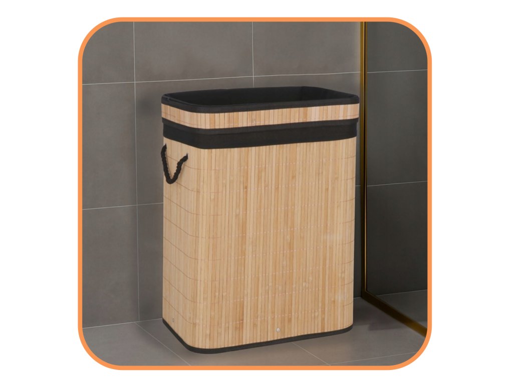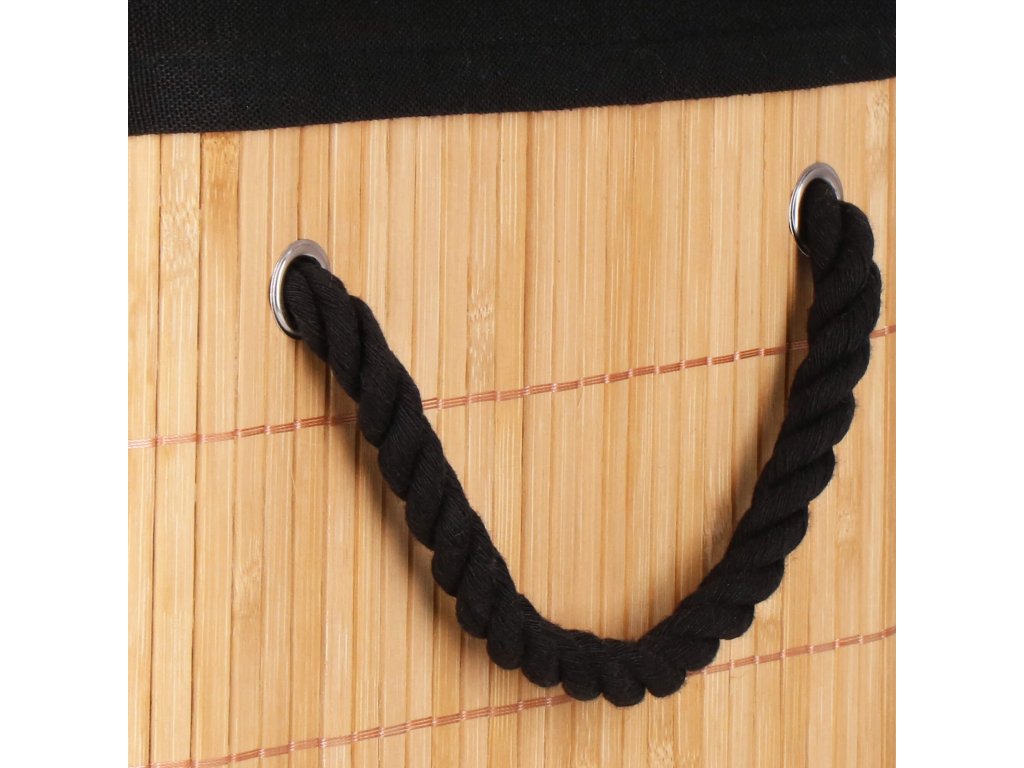 - Elemek a készletben (6 elem): bambusz test, MDF alj, felső megerősítés fémhuzalból, szövet belső rész, bambusz fedél - 2 elem