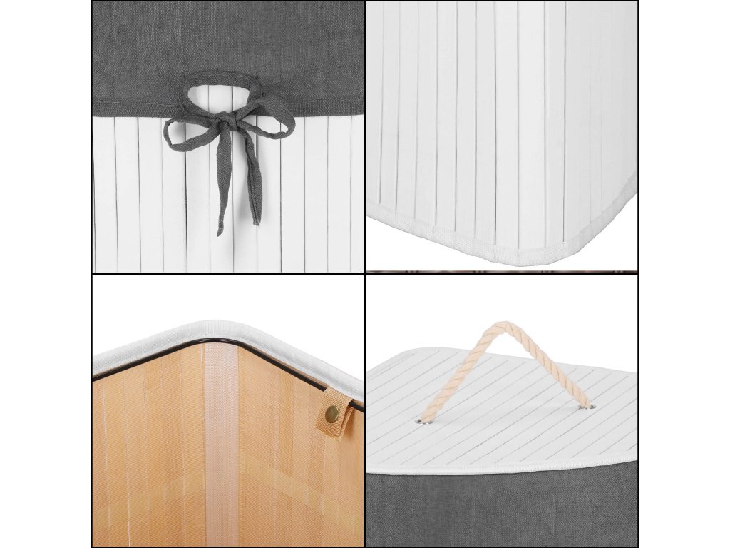- Elemek a készletben (5 db): bambusz test, MDF alap, fém huzalból készült felső merevítés, szövet belső, bambusz fedél