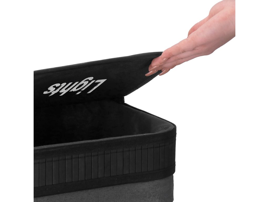 - A fedél két elemből áll, amelyeket cipzárral rögzítenek - az alsó elem a házra kerül, a felső elem mozgatható része kinyitja és zárja a kosarat