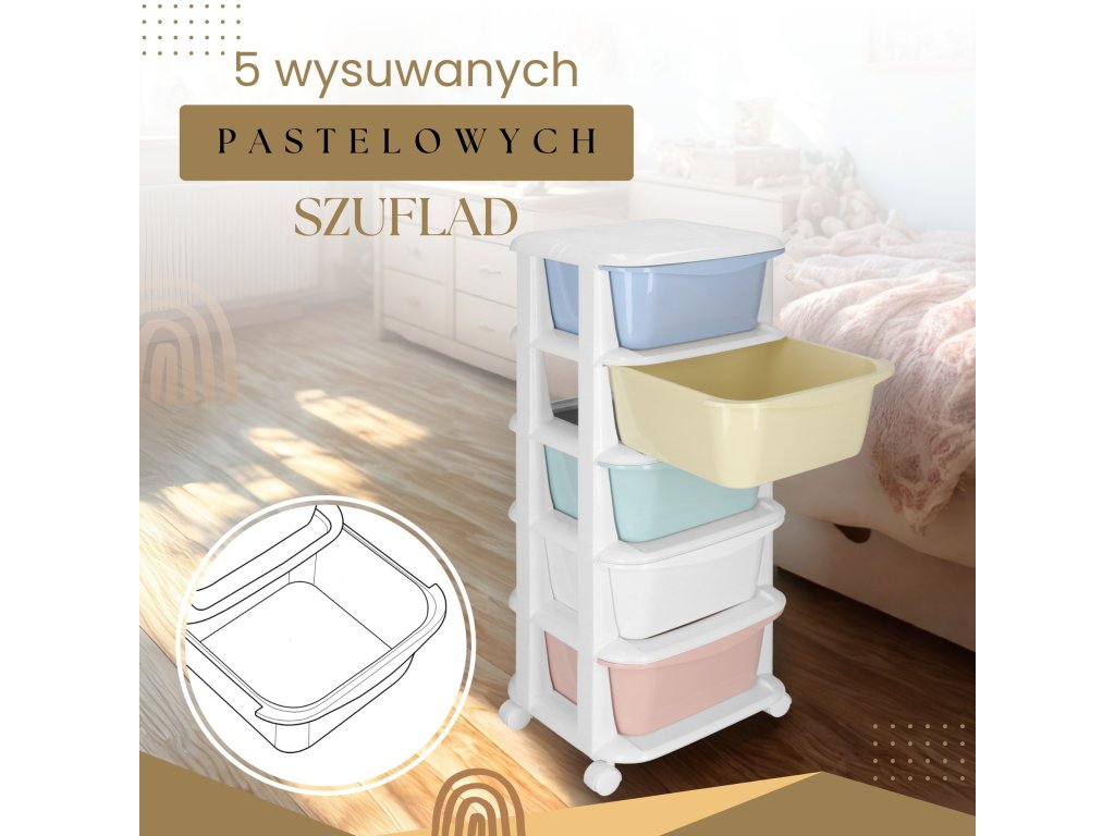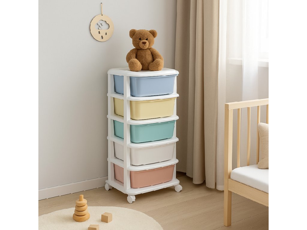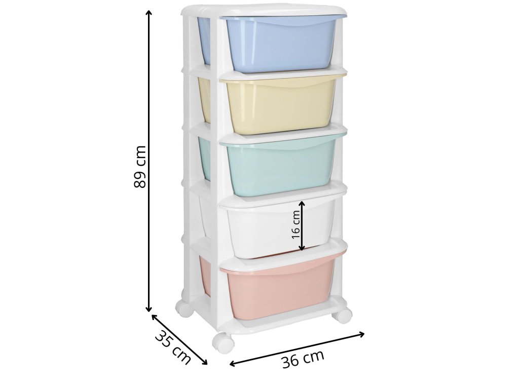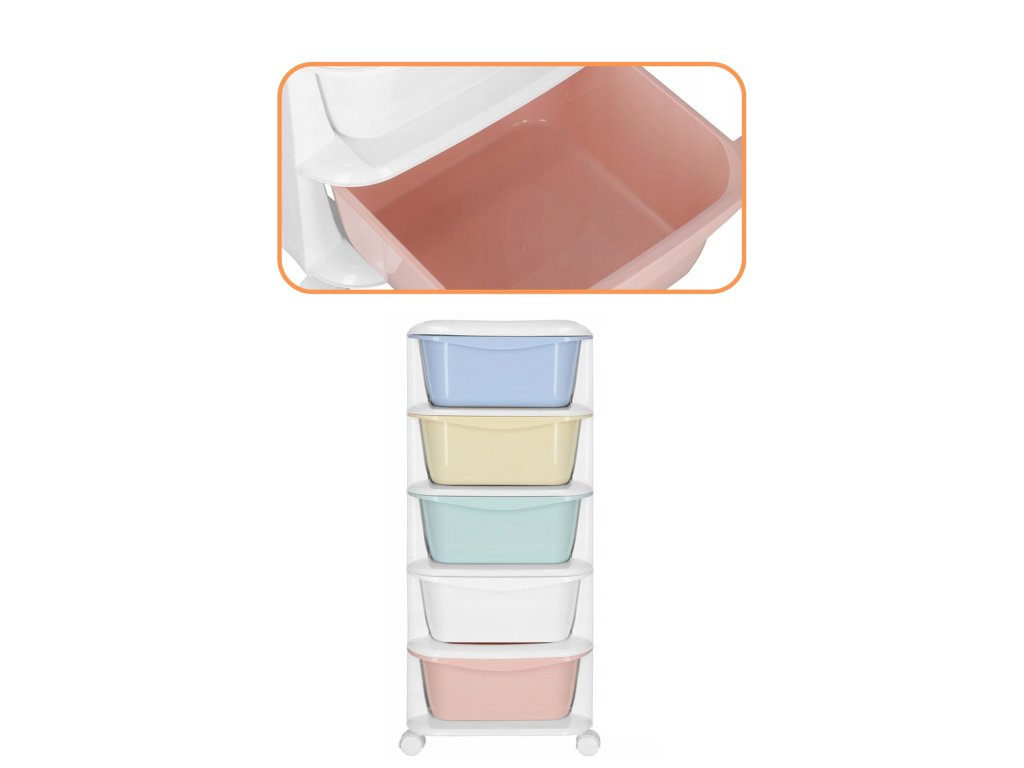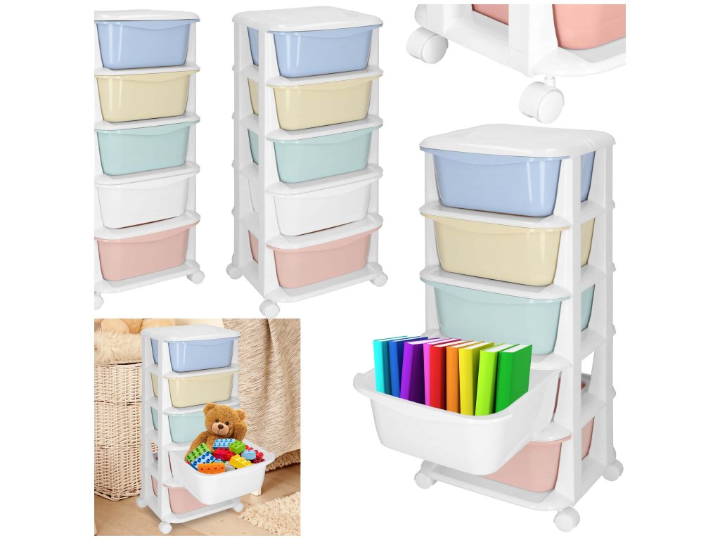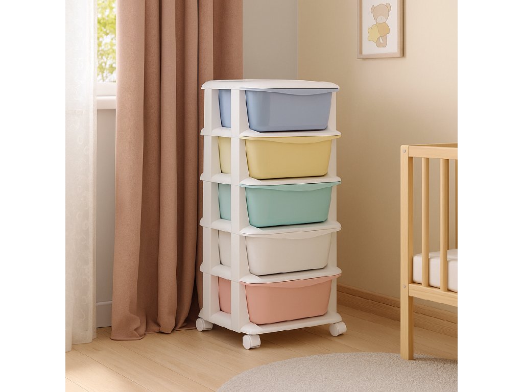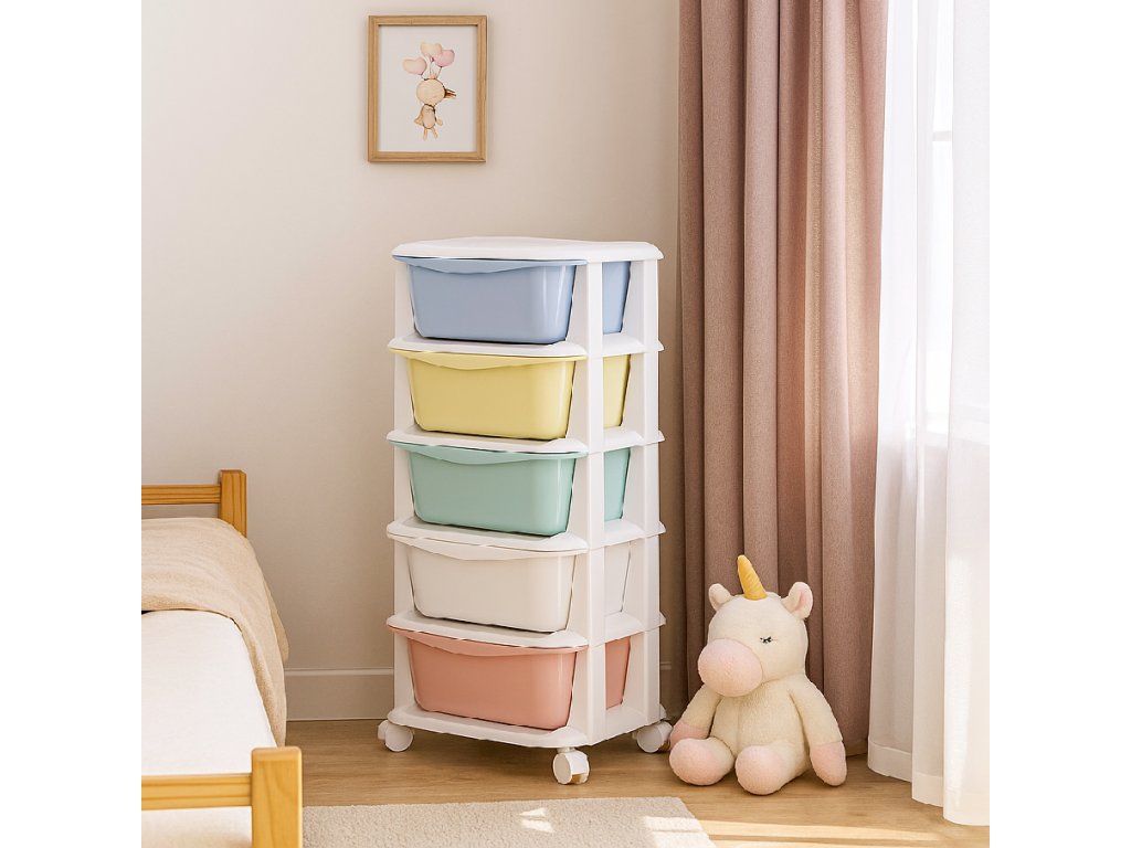 - Fiókok színei: piros, fehér, zöld, sárga, kék (pasztell)