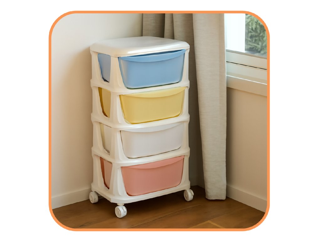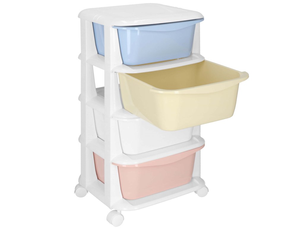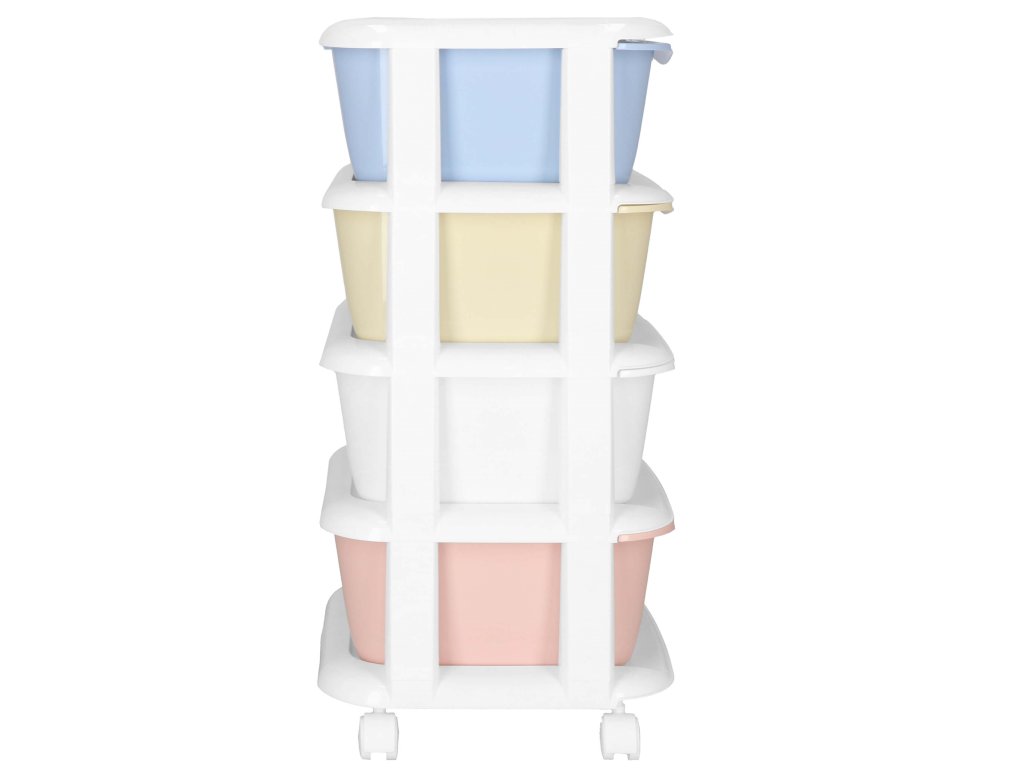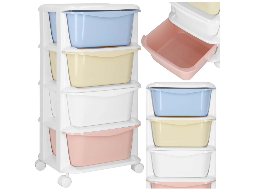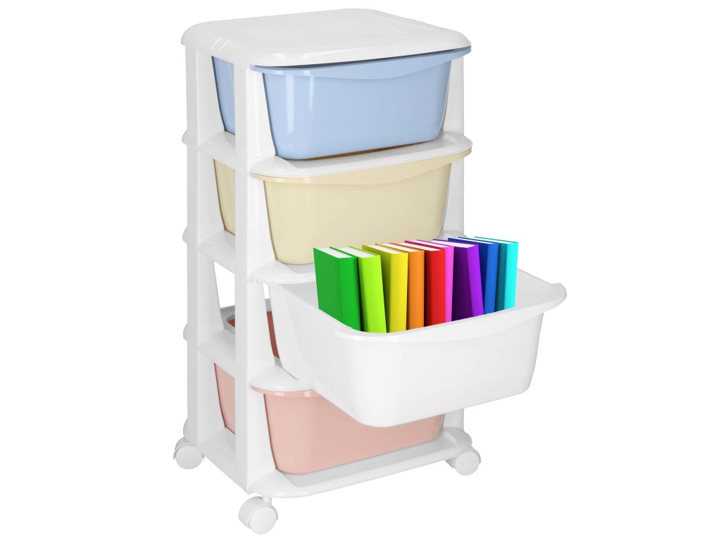- Fiókok színei: piros, fehér, sárga, kék (pasztell)