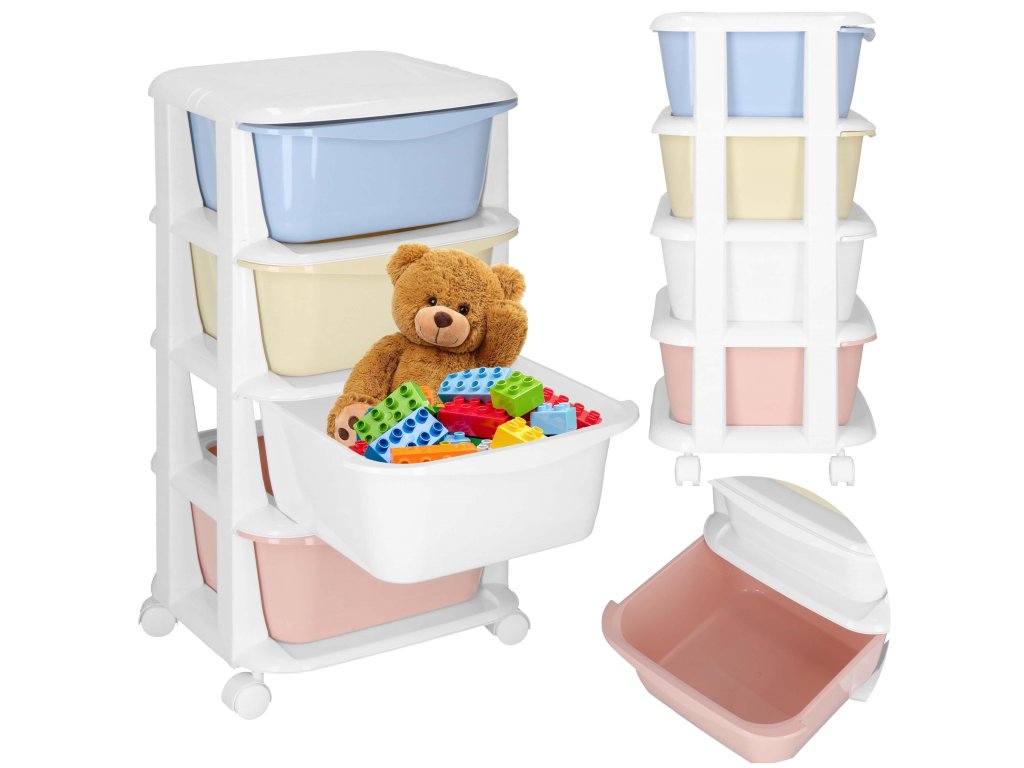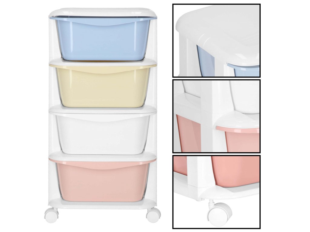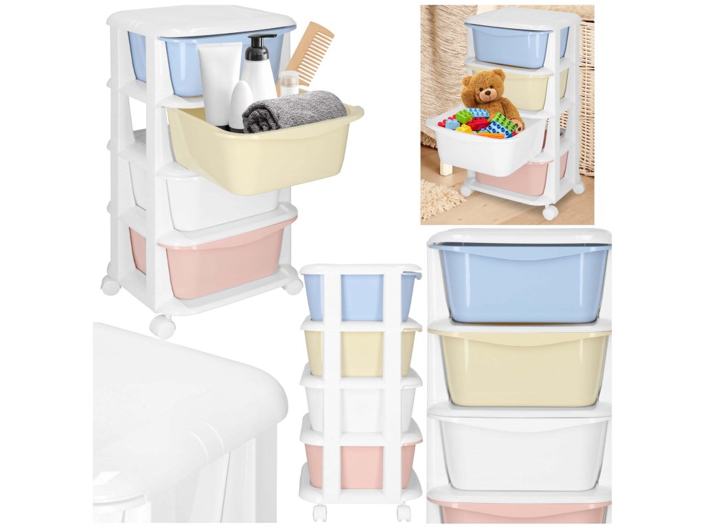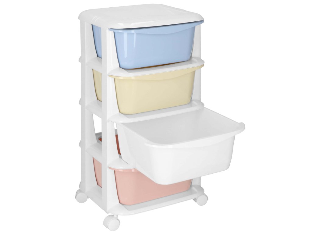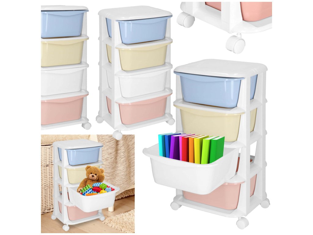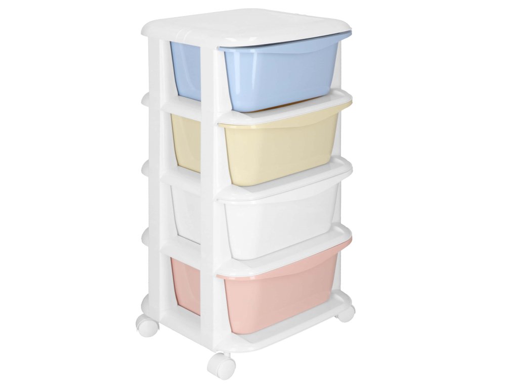 - Fiókok színei: piros, fehér, sárga, kék (pasztell)