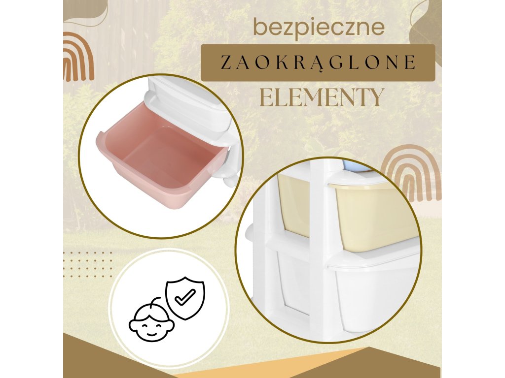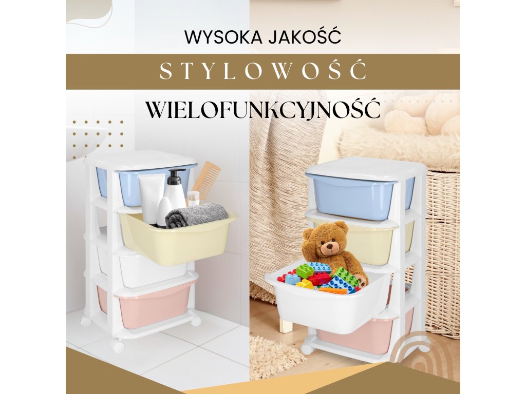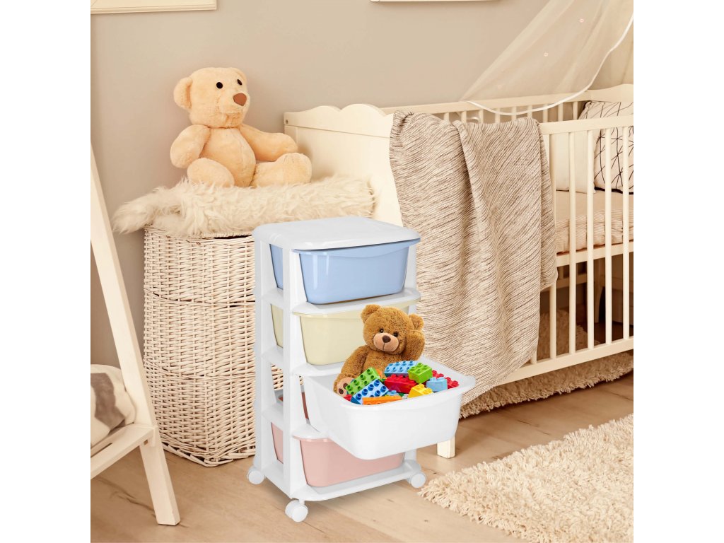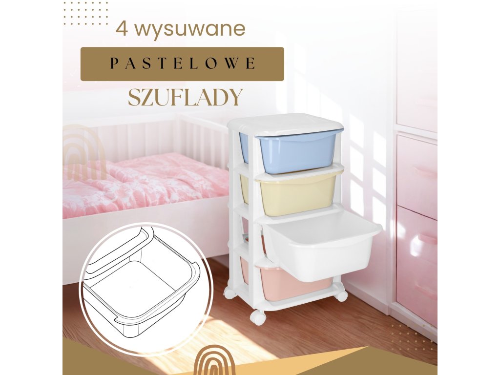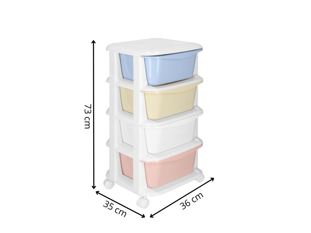 - Fiókok színei: piros, fehér, sárga, kék (pasztell)