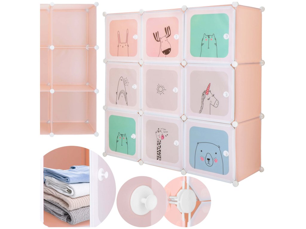 - A készlet tartalma: 33 rózsaszín négyzet / 9 ajtó nyomtatással / 32 sarok / 9 ajtózár / 9 fogantyú a szekrényajtók kezeléséhez / fa kalapács