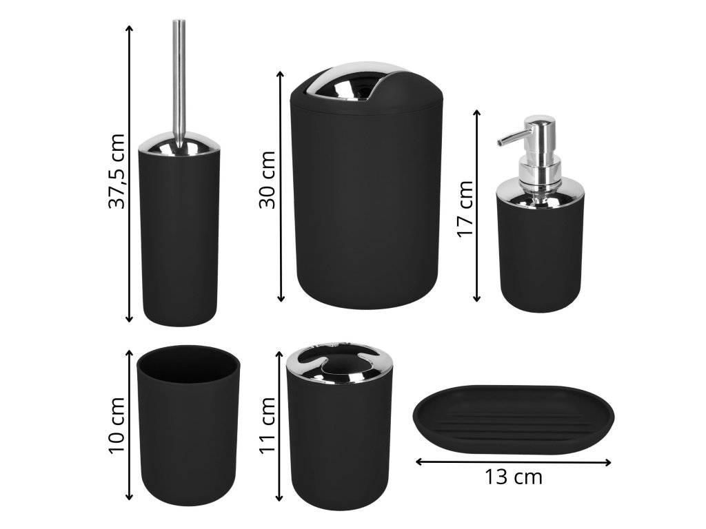 - A készlet 6 fürdőszobai kiegészítőt tartalmaz