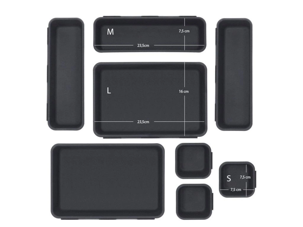 - 3x M méretű rendező: 23,5x7,5x4,5 cm