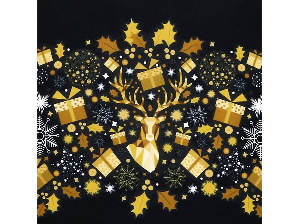 - Minta: ajándékok + szarvasok + hópelyhek sötét háttéren