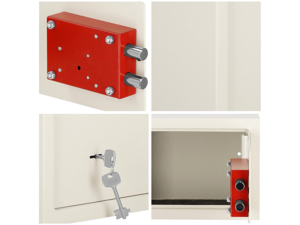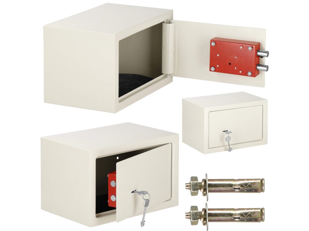 - Továbbá: falhoz és padlóhoz rögzítési lehetőség (dübelek a készletben), filcbélés a széf belsejének zajcsökkentésére