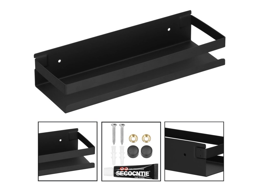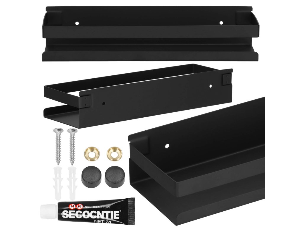 A készlet tartalmazza: polc (összeszerelést nem igényel), két csavart a falra való rögzítéshez, ragasztót, szerelő matricákat