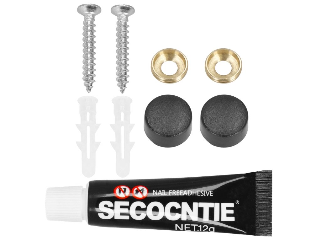 - Szerelés: ragasztóval vagy csavarokkal (tartalmaz egy 12g-os ragasztócsövet és két csavart)