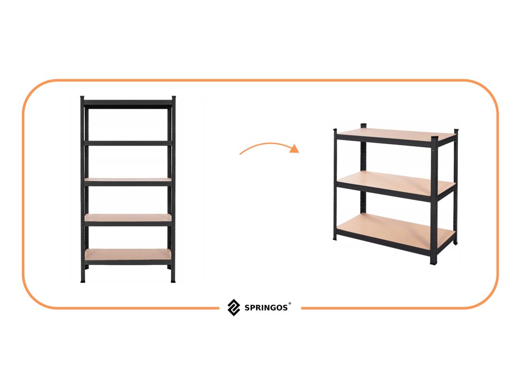 - A polcok bármilyen magasságban felszerelhetők - a függőleges elemek teljes magasságában 3 cm-enként elhelyezett szerelési lyukakkal rendelkeznek