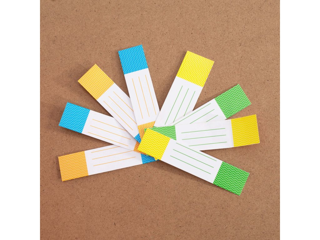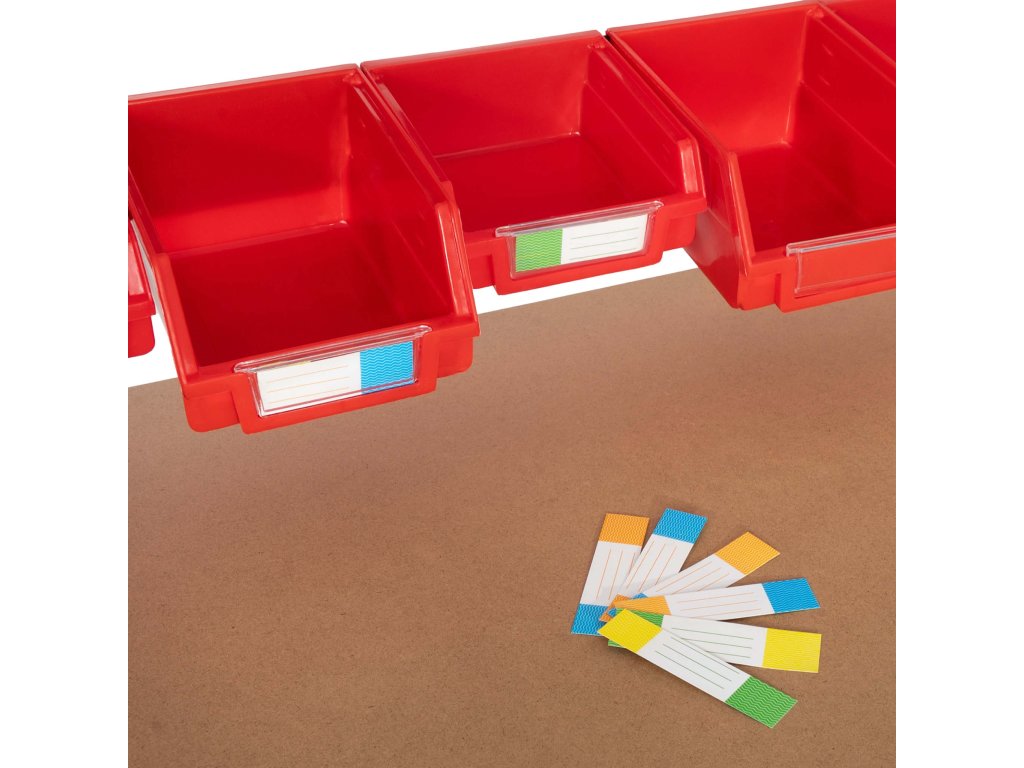 - Rendszerelrendezési elemek: átlátszó címkék színes papírcsíkokkal 9x