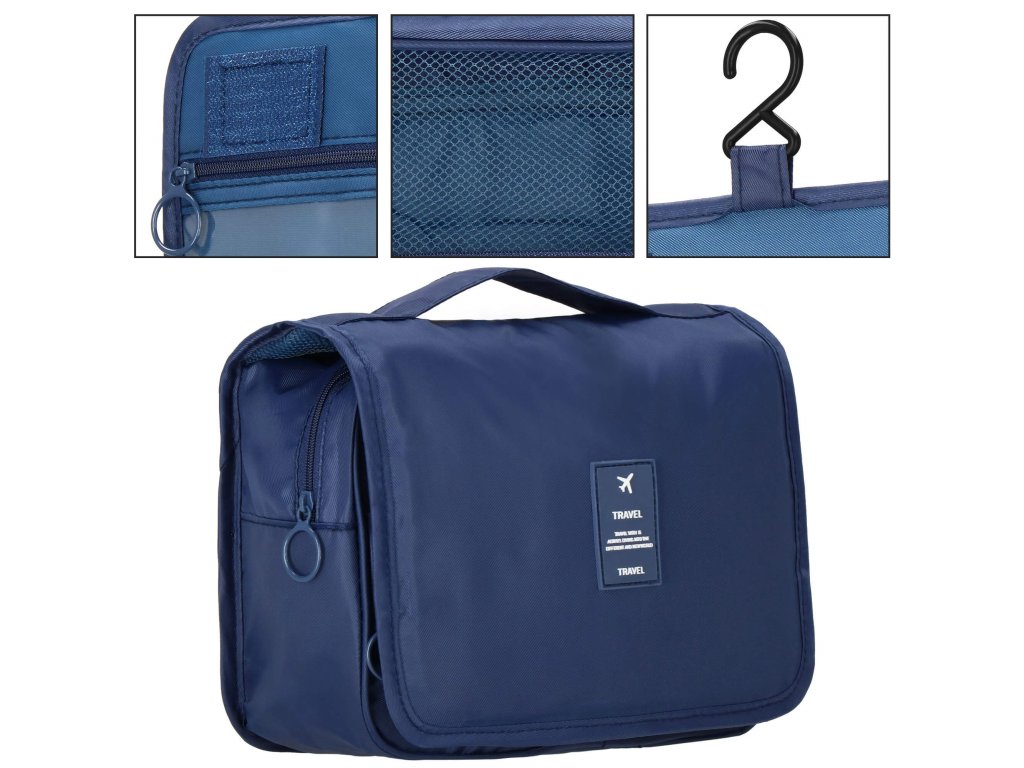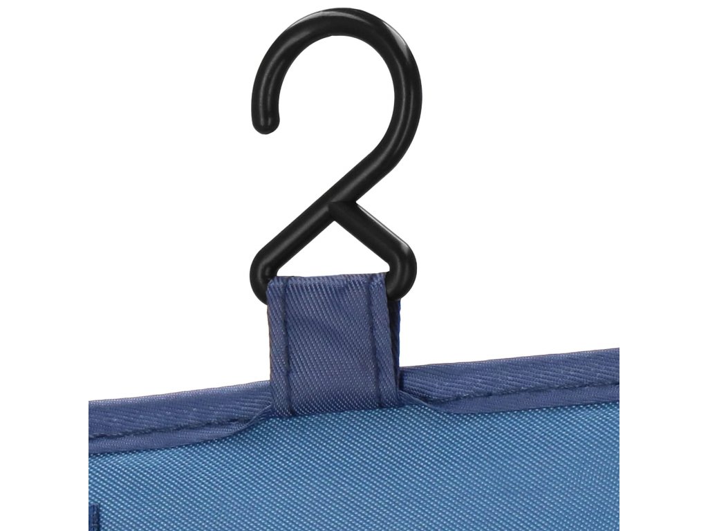 - Szín: sötétkék, sötétkék cipzárak, fekete horog