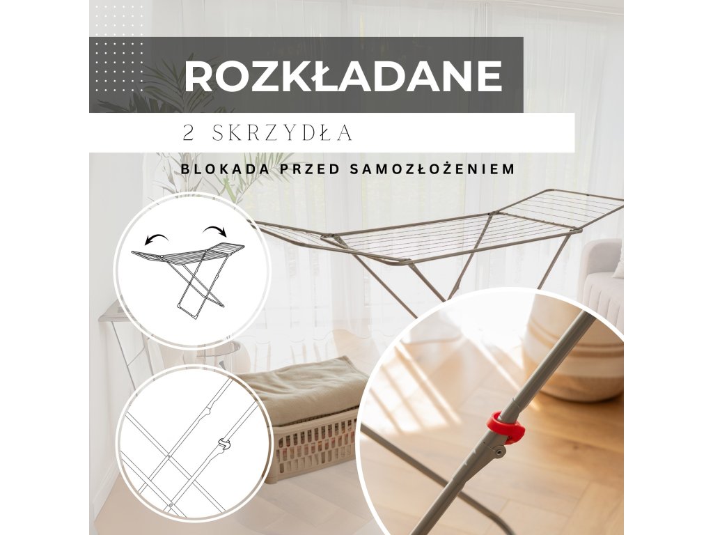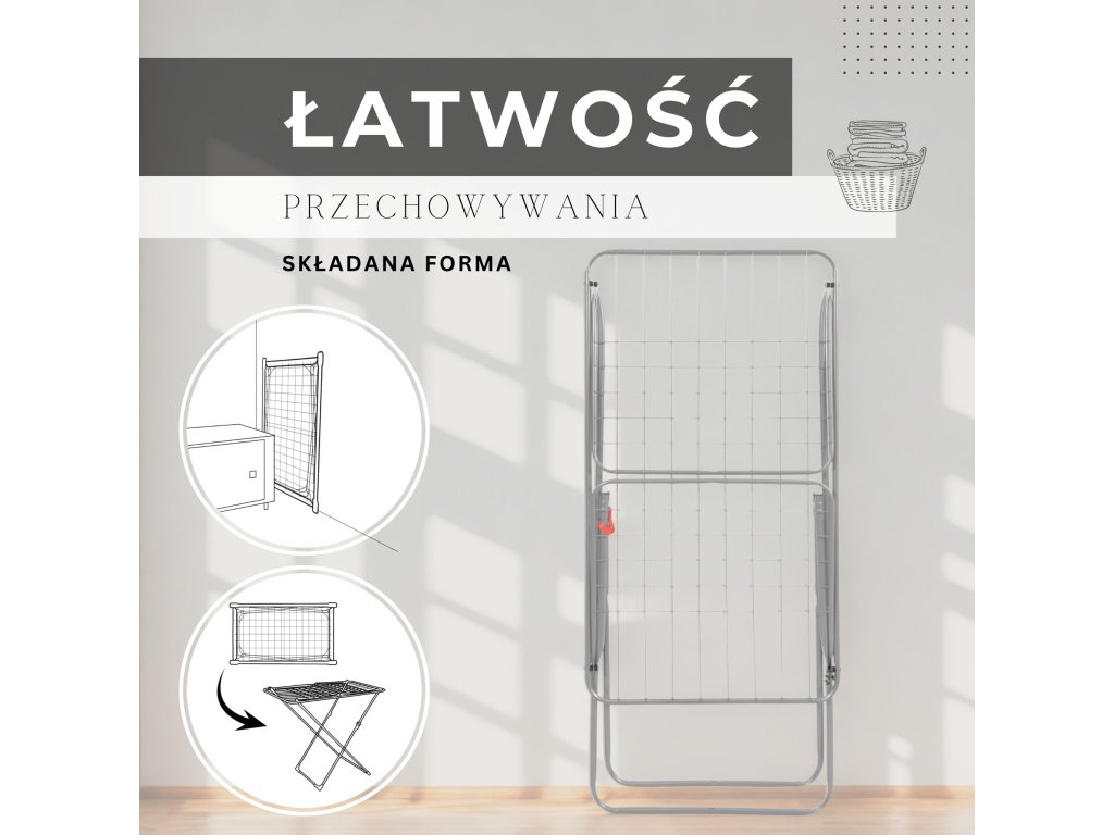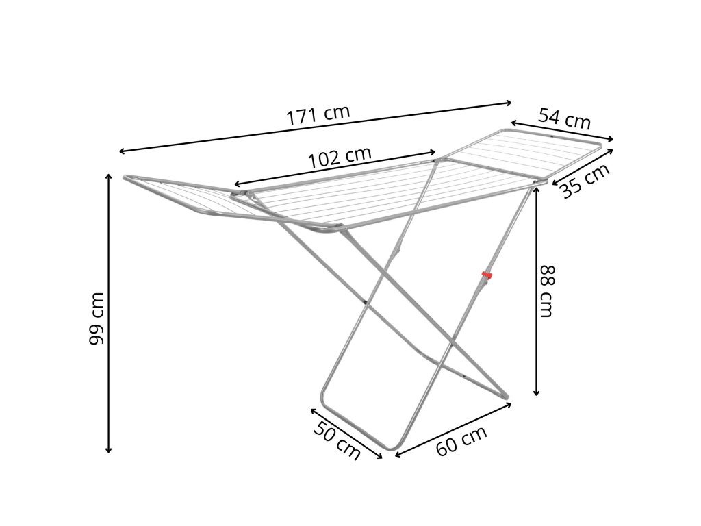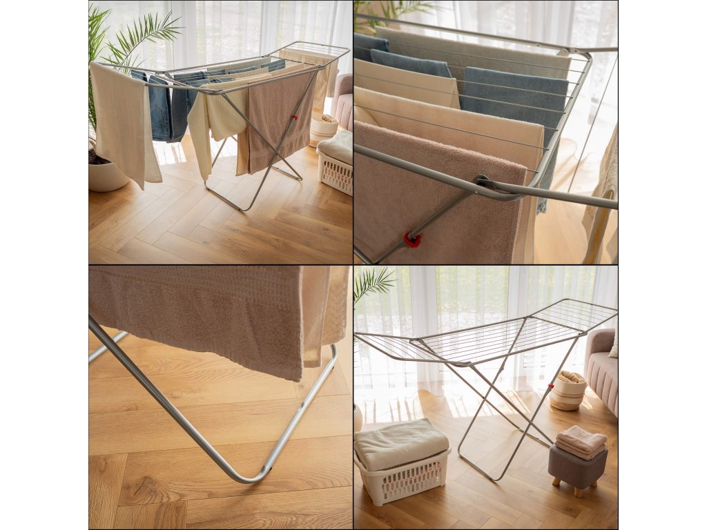- Összecsukott szárító méretei: 128 x 54 x 7 cm