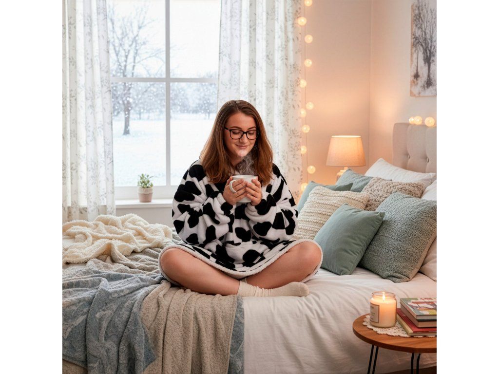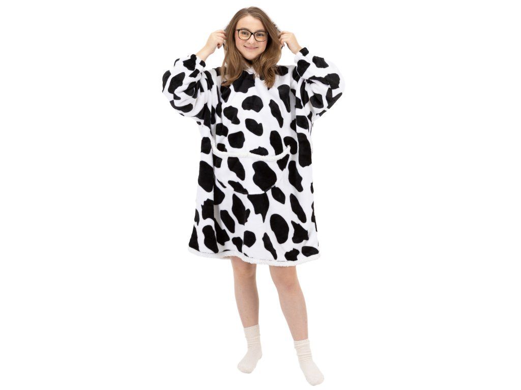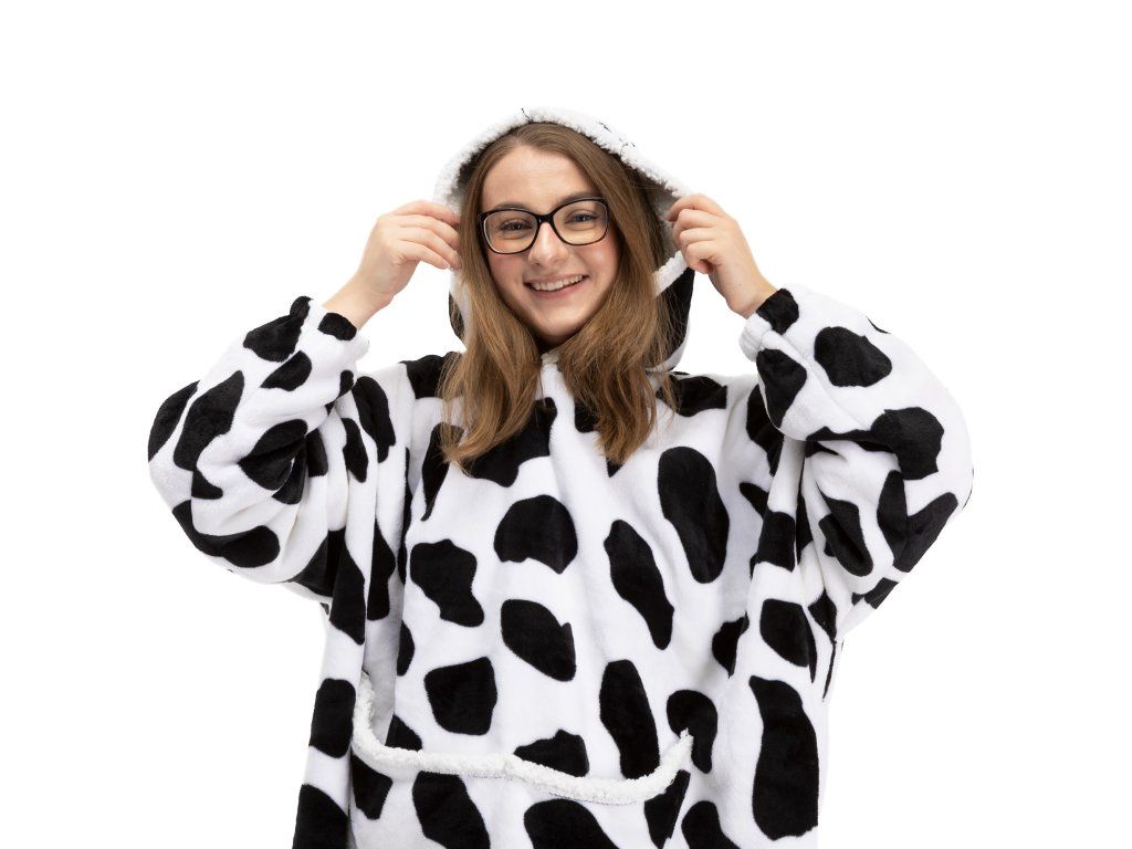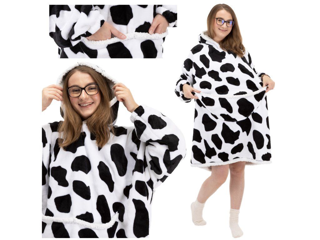 - Oversize kapucnis pulóver egy nagy kenguru zsebbel, amely két részre van osztva (egy közös zseb, két kéznek nyílással).