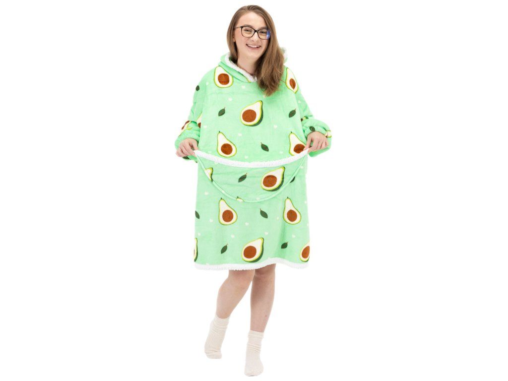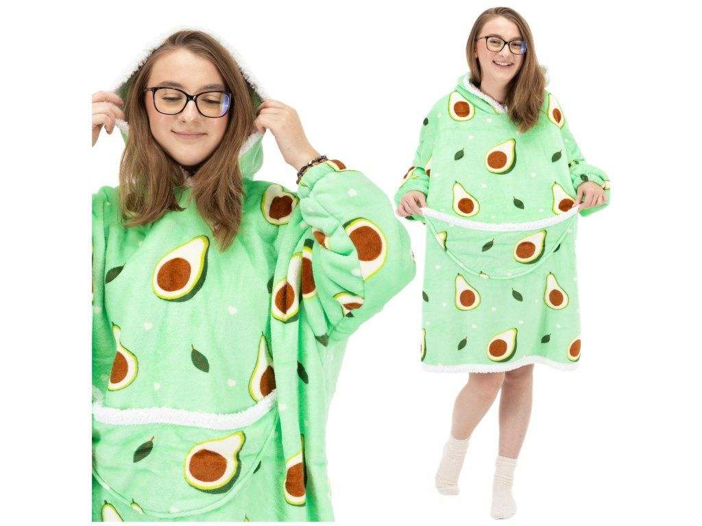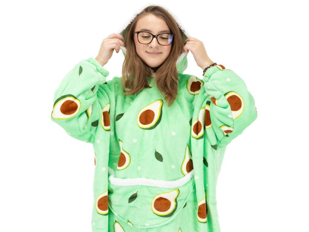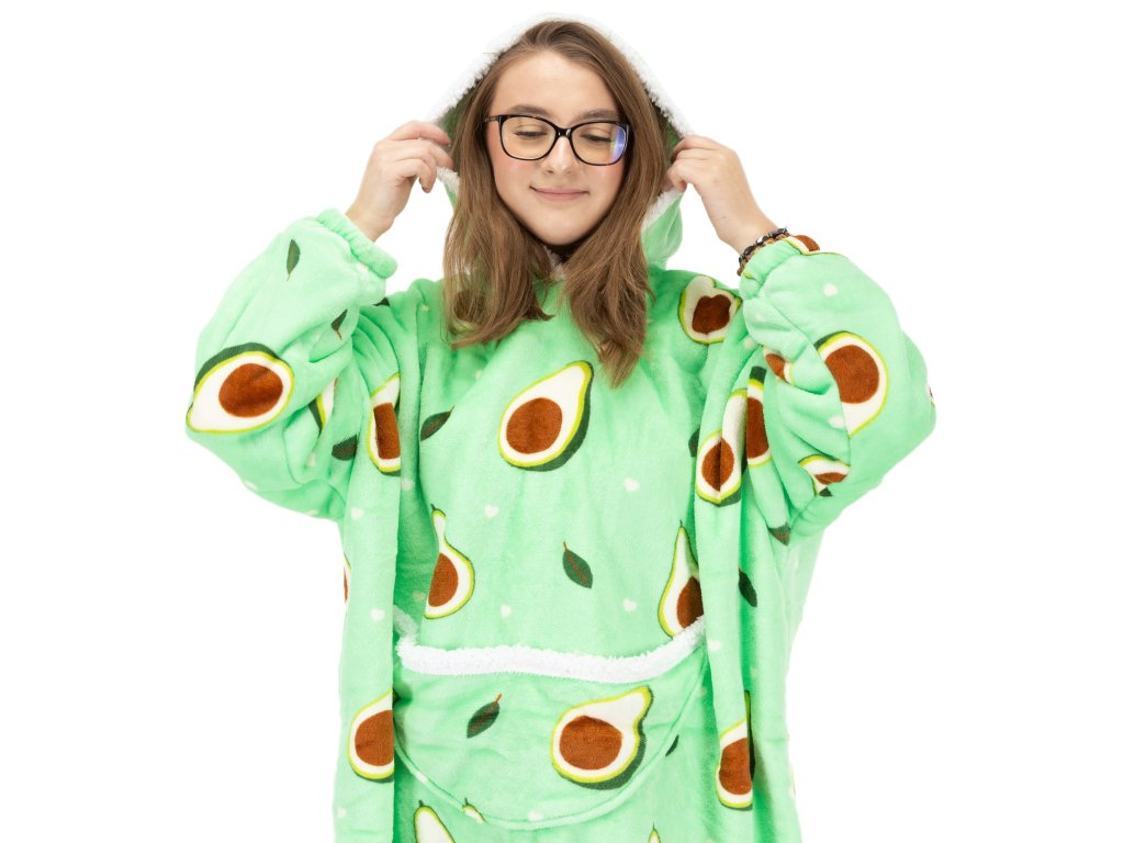 - Túlméretes kapucnis pulóver nagy "kenguru" zsebbel, amely két részre van osztva (egy közös zseb két kéznyílással).
