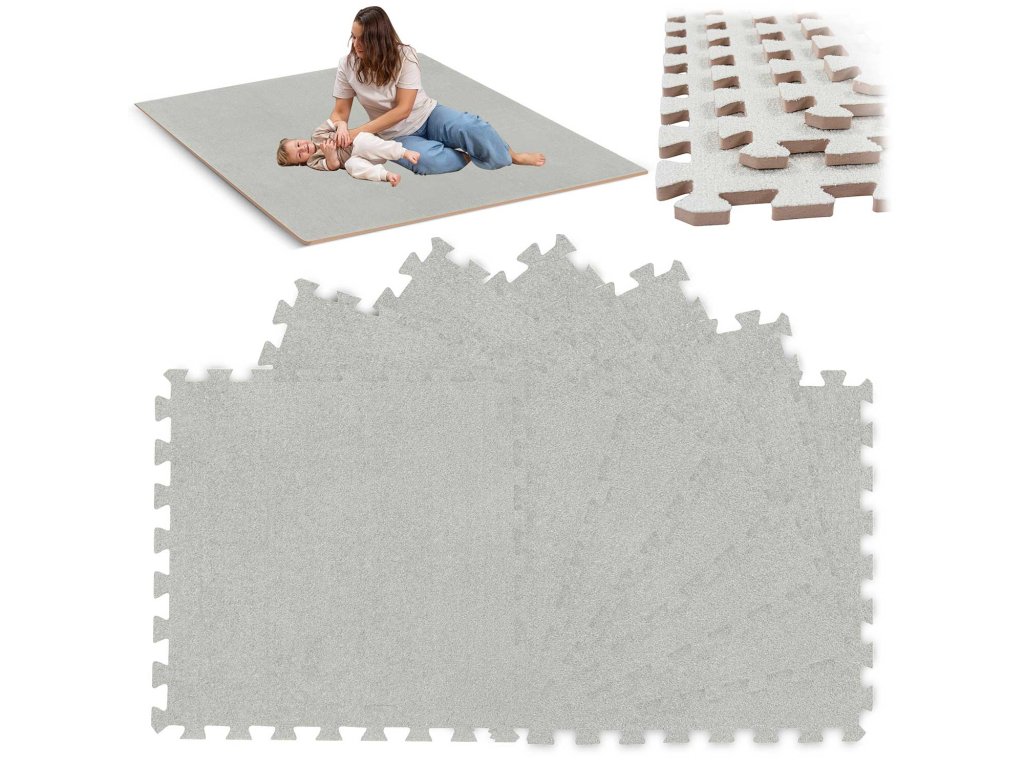 szőnyegből áll, összesen 2,16 m alapterülettel, amelyeket szabadon kombinálhat. A szőnyeg strapabíró anyagból készült, amely védelmet nyújt, puha és szőnyegstruktúrájú, ami kellemes a lábnak.Alkalmas, mint