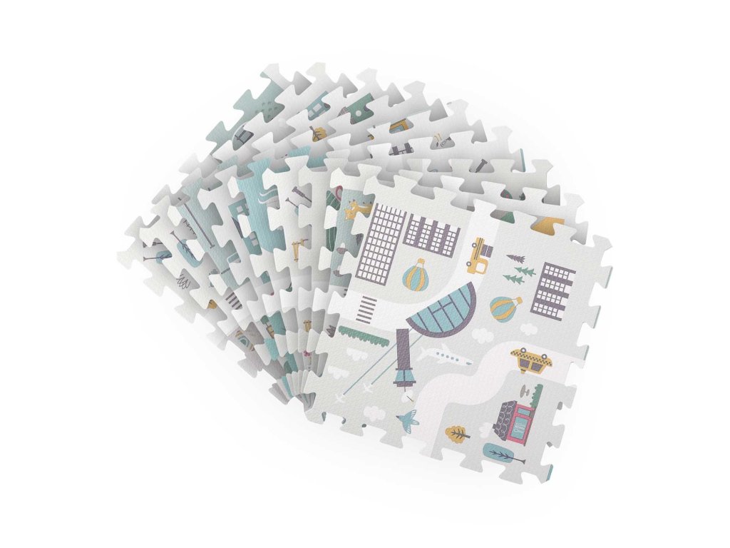 A Nukido habszivacs szőnyeg 9 nagyméretű, 38 x 38 cm-es kirakósból áll.