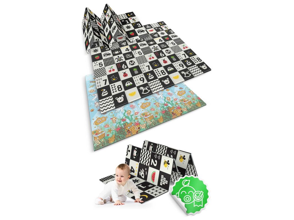 Ez az egyedülálló, 200 x 180 cm méretű, nagyméretű , összecsukható szőnyeg számos praktikus felhasználási lehetőséget kínál. Gyermekének kényelmet biztosít játék és kúszás tanulás közben !
