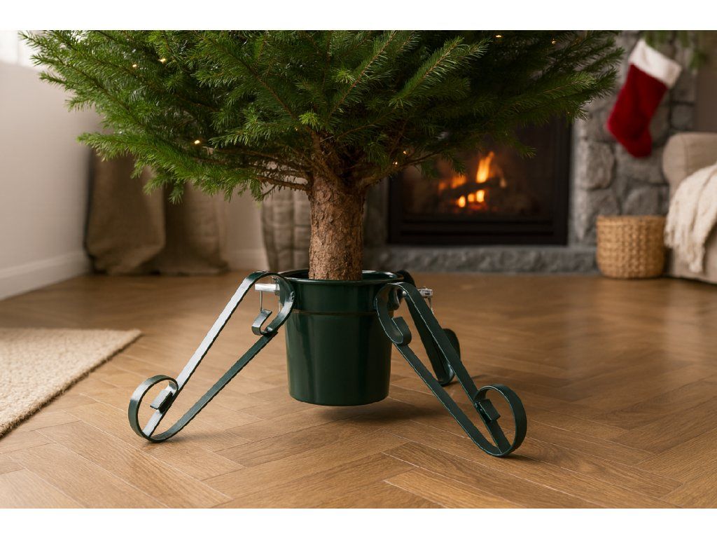 Robusztus és tartós karácsonyfa állvány fémből, amely stabil támogatást nyújt 2,2 m magasságú fák számára. Az 1L-es víztartály segít a fa hosszabb ideig frissen tartásában. Az egyszerű összeállítási rendszernek és a szilárd konstrukciónak köszönhetően a fa beállítása gyors és kényelmes.Méretek: ?52 × H15 cm