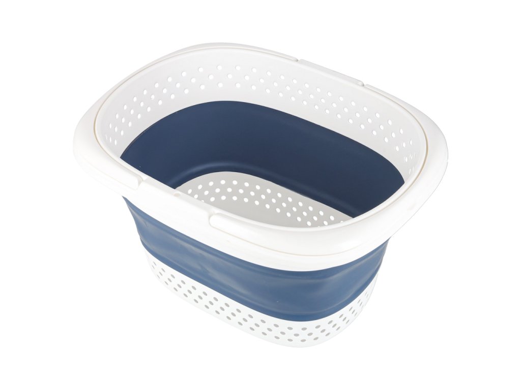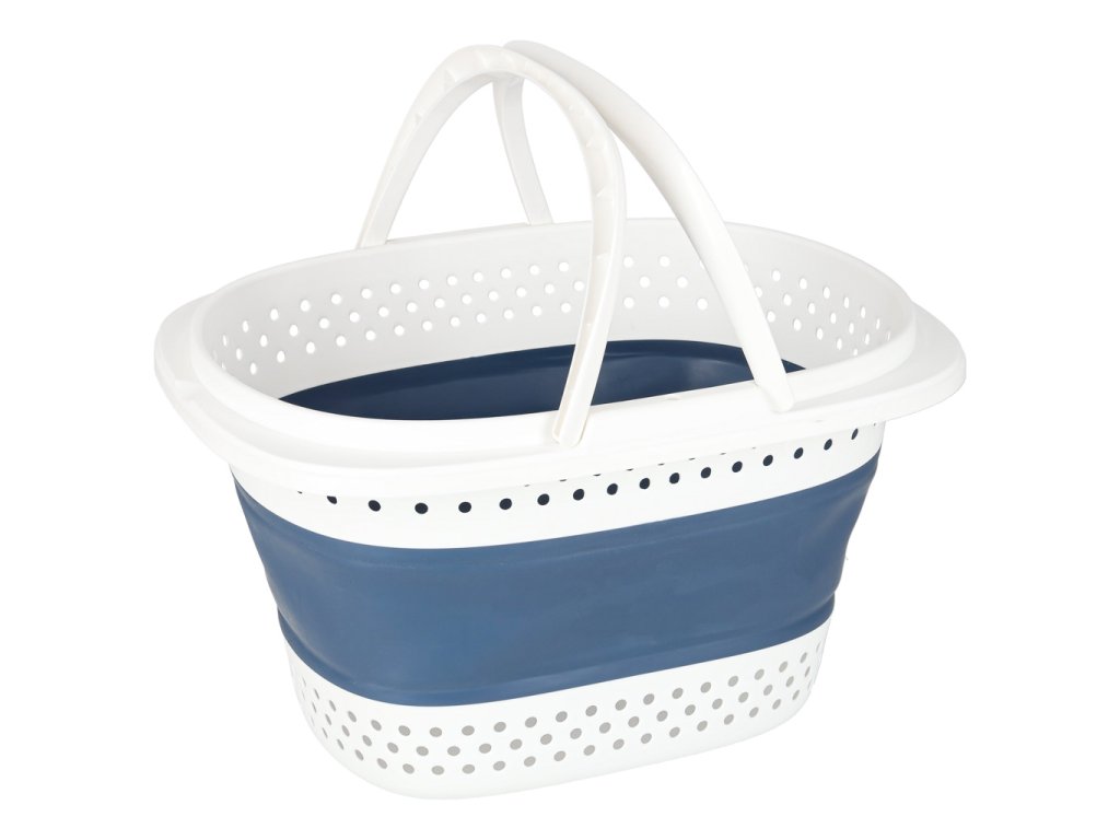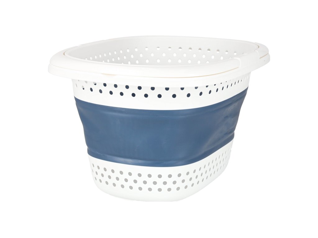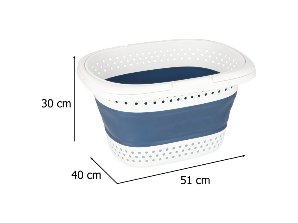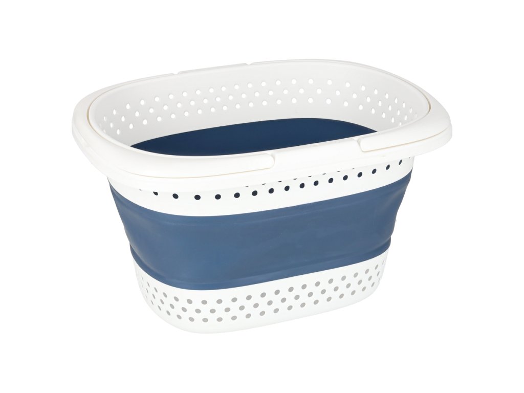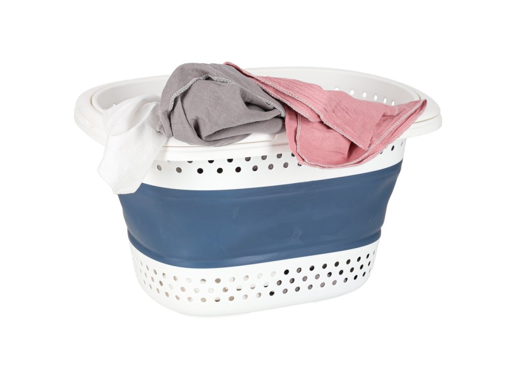 A kosár tartós és könnyű anyagból készült, ellenáll a nedvességnek, és könnyen tisztán tartható. A masszív fogantyúk megkönnyítik a szállítást, és a tágas belső tér elfér benne a ruhák, törölközők vagy ágynemű. Összecsukott állapotban nagyon kevés helyet foglal, így például kényelmesen elhelyezhető a szekrényben vagy a mosógép alatt.