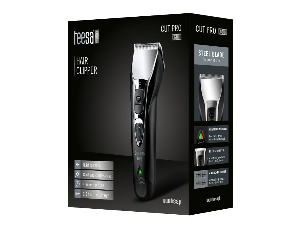Nincs ideje gyakori fodrászlátogatásra? Most már nélkülözheti őket! A Teesa CUT PRO X500 hajvágónak köszönhetően mostantól professzionális hajvágást érhet el anélkül, hogy elhagyná a házat.