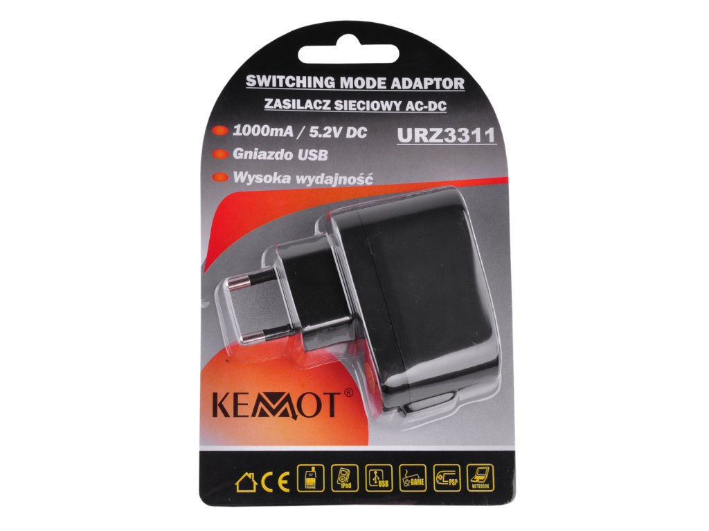 USB aljzat Nagy teljesítményű Műszaki adatok: Bemeneti feszültség: 100 - 240 V AC 50/60 Hz Kimeneti feszültség: 5 V DC (1000 mA)