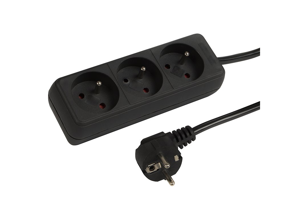 Hálózati hosszabbító kábel PR-370P 3 aljzat földeléssel 3m fekete 3x1,5mm