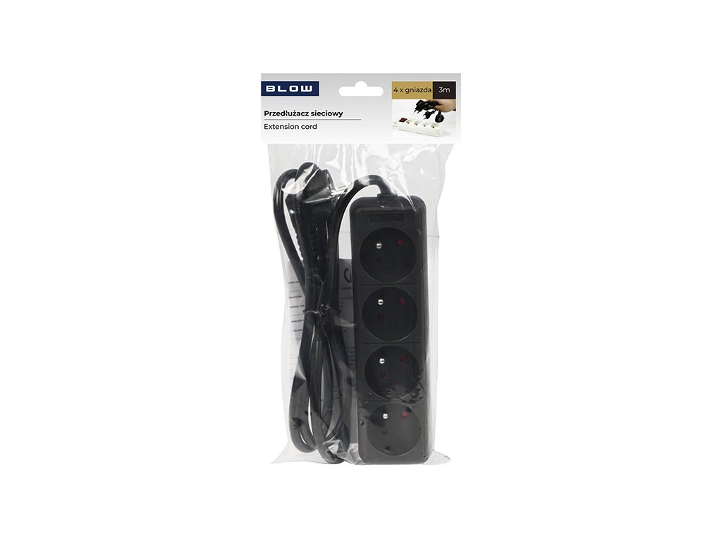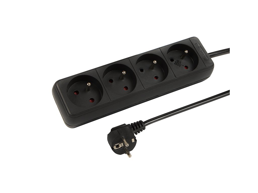 Hálózati hosszabbító kábel PR-470P 4-aljzat földeléssel 3m fekete 3x1,5mm