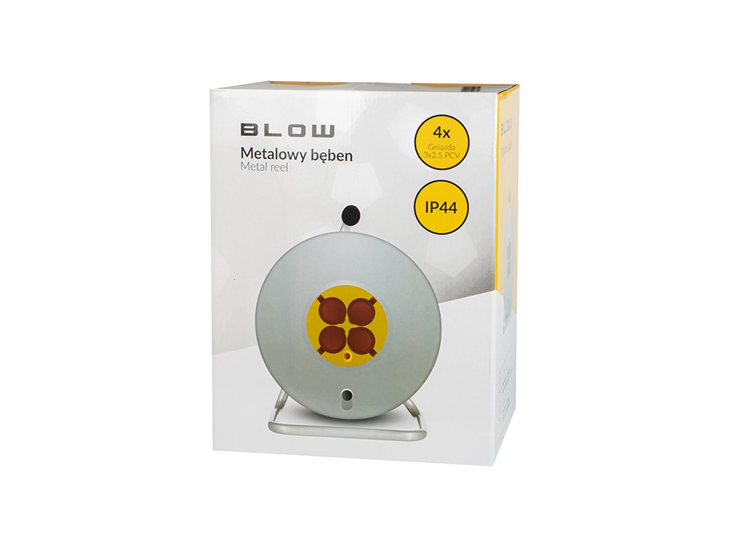 Erős hosszabbító kábel fém dobbal a BLOW márkától. Rendkívül hasznos és nélkülözhetetlen, amikor elektromos eszközöket akarunk csatlakoztatni, például fűnyírót, fúrót, autóporszívót vagy kerti lámpát. Négy földelt csatlakozóaljzattal és önzáró fedelekkel van felszerelve, ami garantálja az IP44 védelmi osztályt, ami azt jelenti, hogy gond nélkül használhatjuk kültéren, még rosszabb időjárási körülmények között is.