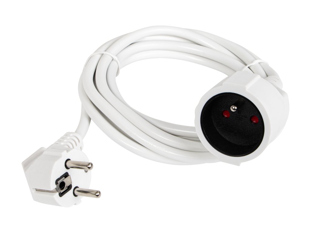 Fehér BLOW hálózati hosszabbító, egyetlen aljzattal, otthoni használatra tervezve. A kábel egyik végén földelt aljzat található, a másik végén pedig egyetlen hálózati dugó. Ennek köszönhetően akár 3m távolságra lévő elektromos készülékek is csatlakoztathatók.
