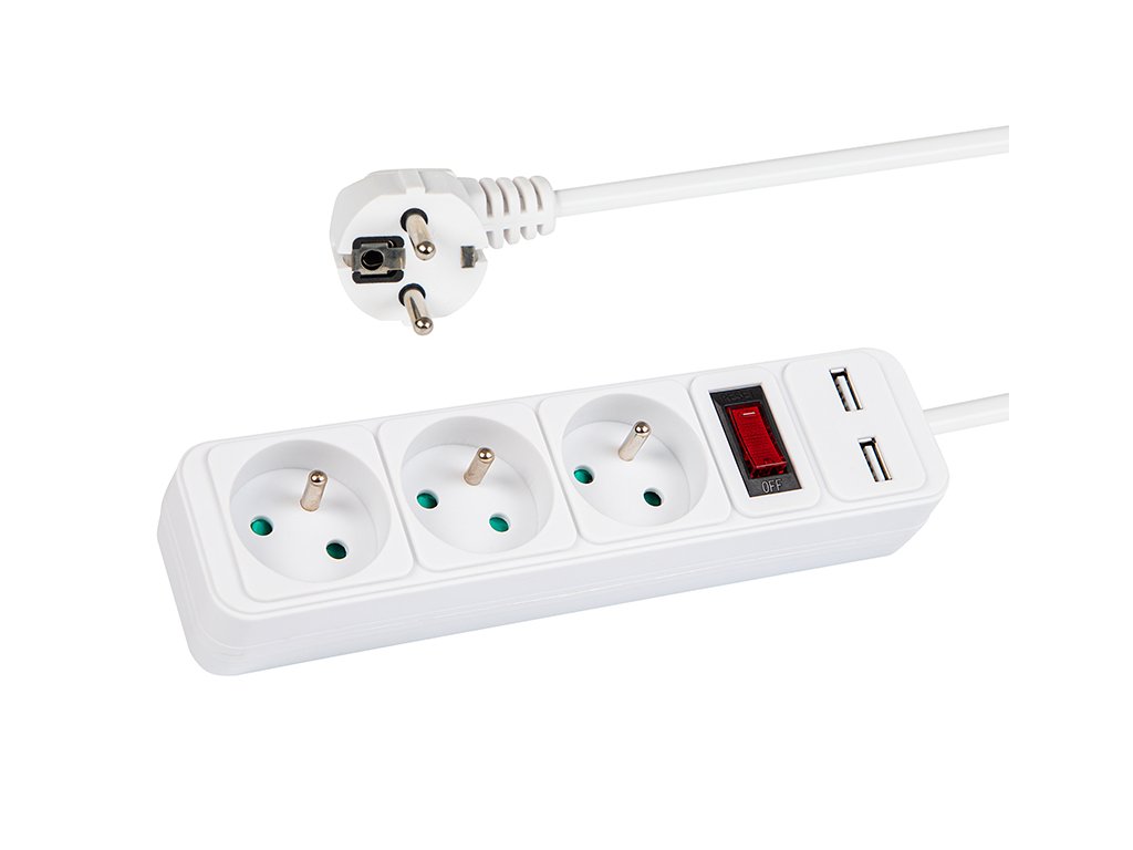 Hálózati hosszabbító PR-370WSP/USB 3-Aljzat+USB földeléssel+kapcsoló 5m FEHÉR 3x1,5mm