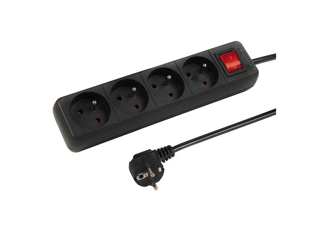 Hálózati hosszabbító PR-470WSP 4-csatlakozó földeléssel+kapcsoló 5m fekete 3x1,5mm