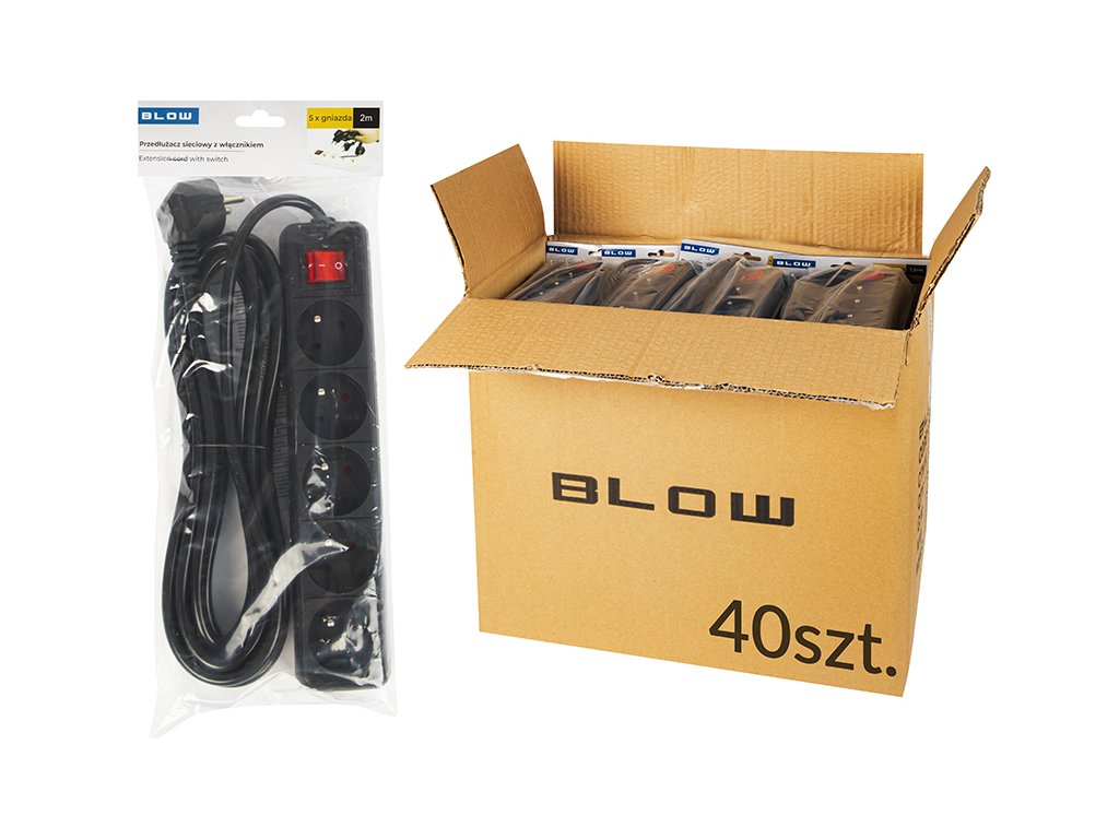 Hálózati hosszabbító PR-570WSP 5-aljzat földeléssel+kikapcsoló 2m fekete 3x1,5mm csomagolás