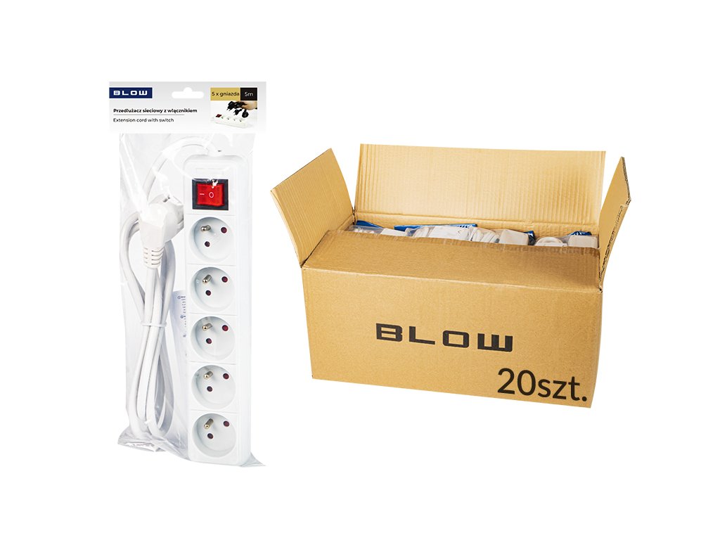 Hálózati hosszabbító PR-570WSP szögletes hálózati csatlakozóval, 5 földelt aljzattal és kapcsolóval.