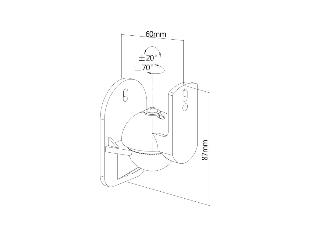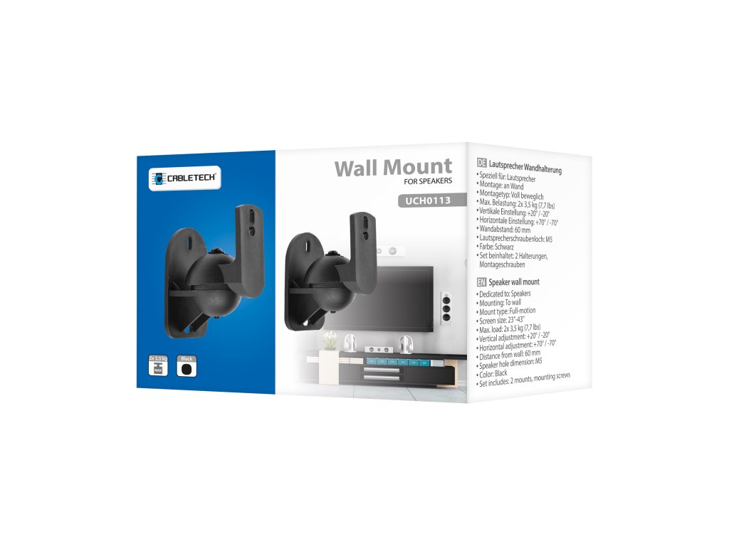 Rendeltetés: Hangszórók Szerelés: Fali rögzítés Konzol típusa: Mozgatható Maximális terhelés: 2x 3,5 kg Függőleges beállítás: +20° / -20° Vízszintes beállítás: +70° / -70° Távolság a faltól: 60 mm Hangszóró csavarfurat: M5 Szín: Fekete Tartalom: 2 konzol, rögzítőcsavarok