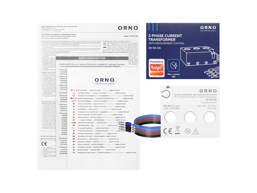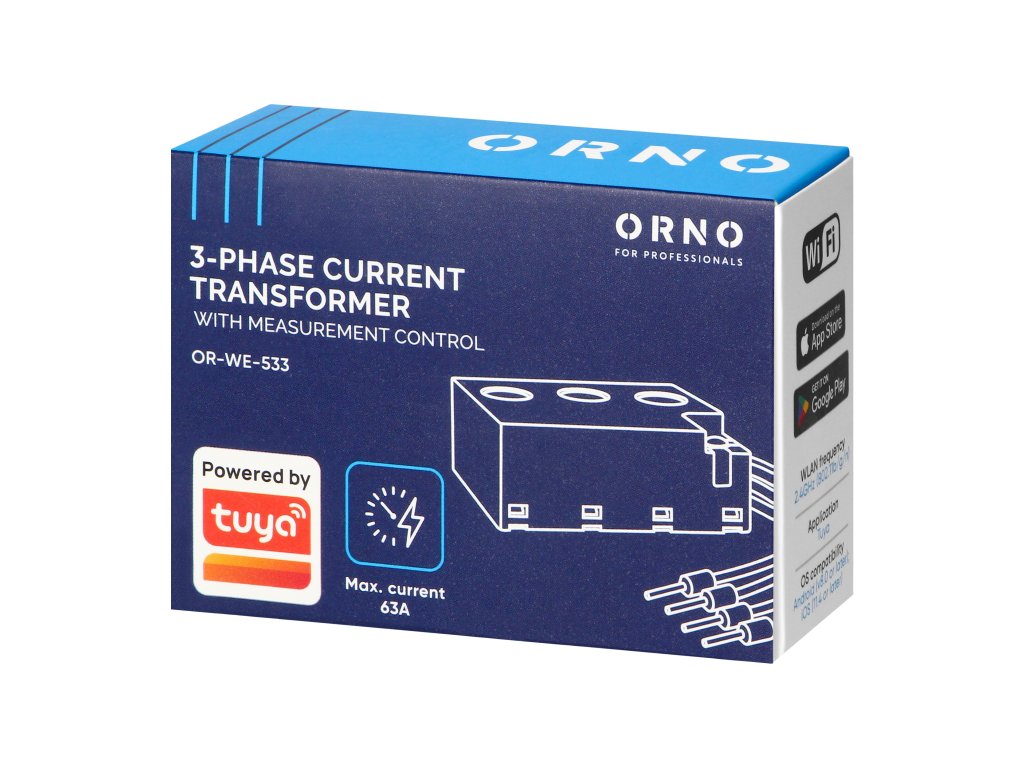 A háromfázisú áramváltó mérésvezérléssel egy modern eszköz, amelyet elektromos kapcsolószekrényekben való használatra terveztek.A Tuya Smart Wi-Fi technológia segítségével lehetővé teszi az eszköz távoli vezérlését egy mobilalkalmazáson keresztül. A transzformátort 230/400V-os működésre tervezték. A maximális primer áram 63A.