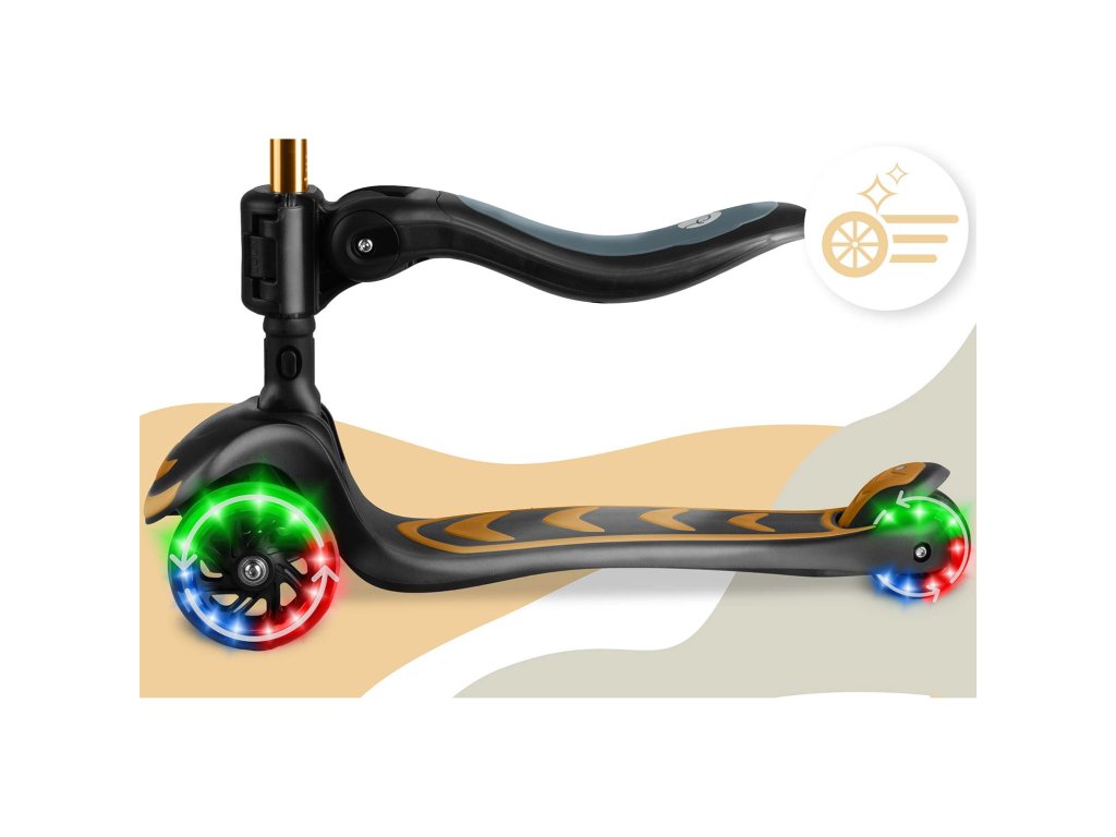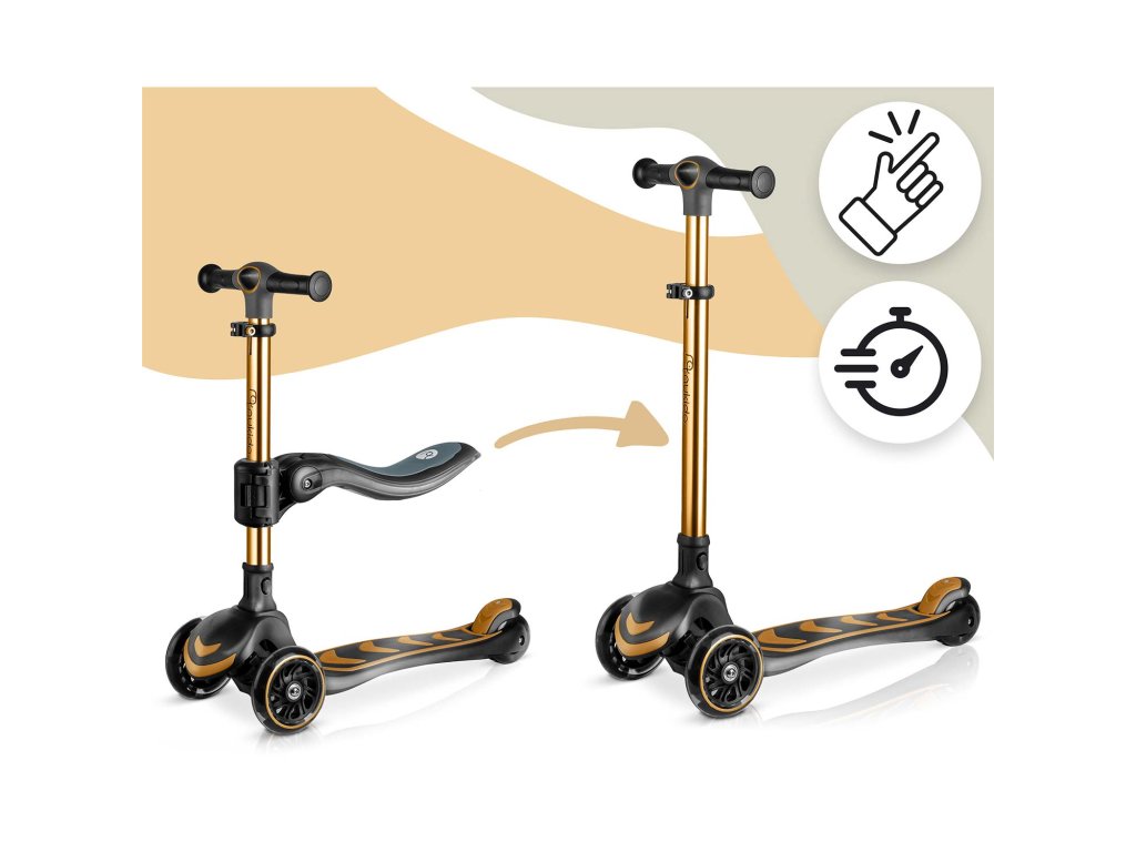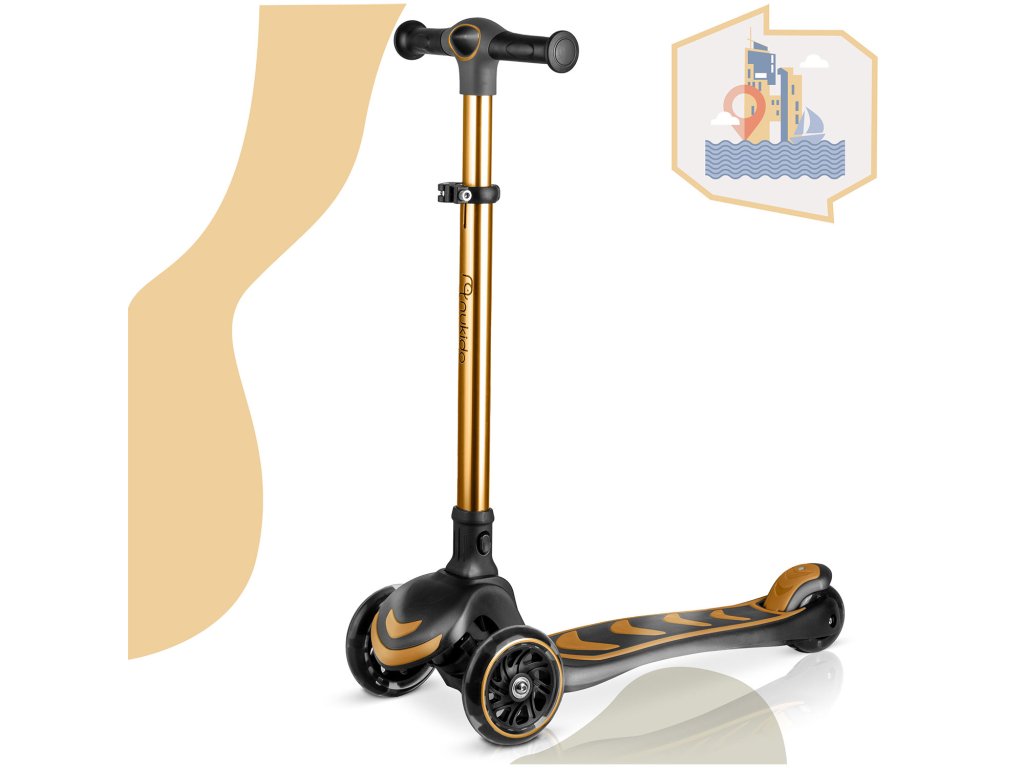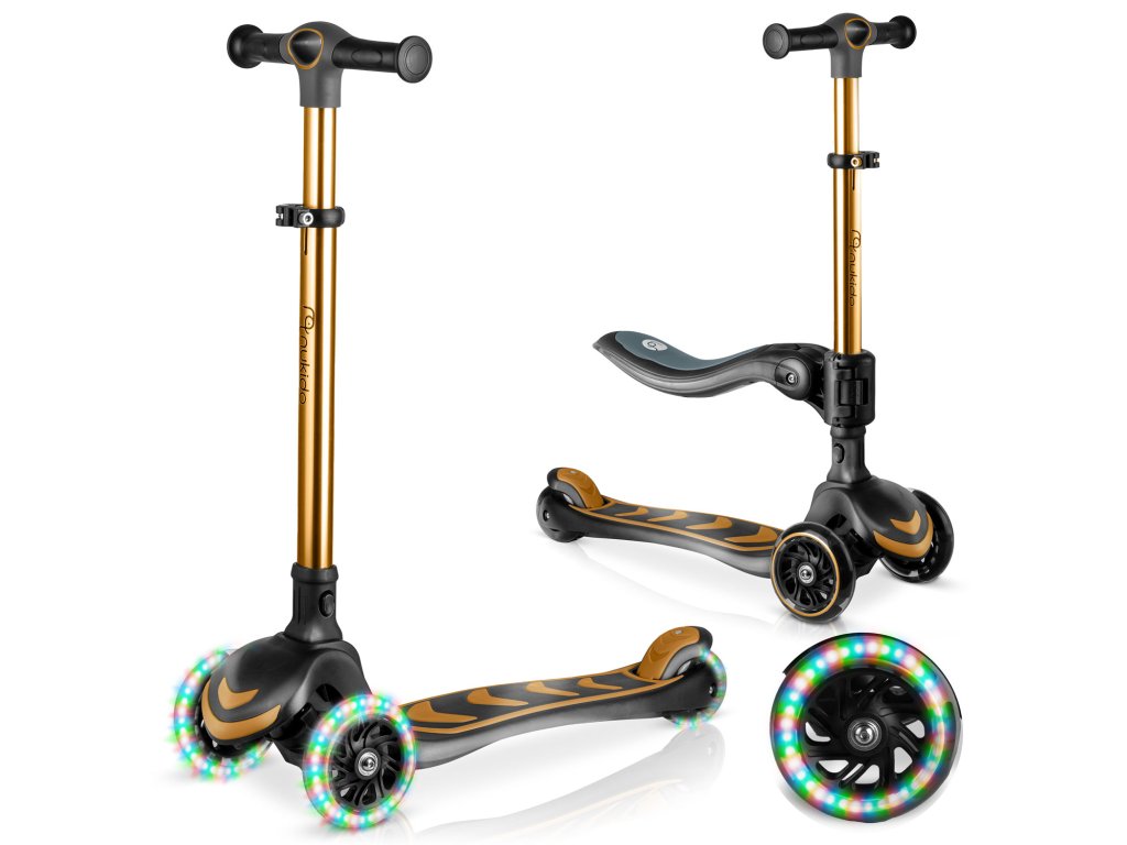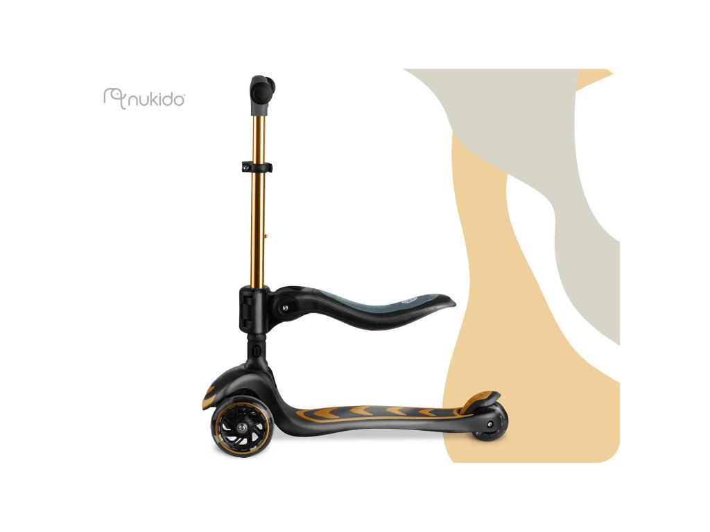 Háromkerekű gyermek roller egyensúlyozó üléssel Nukido Flippo - arany