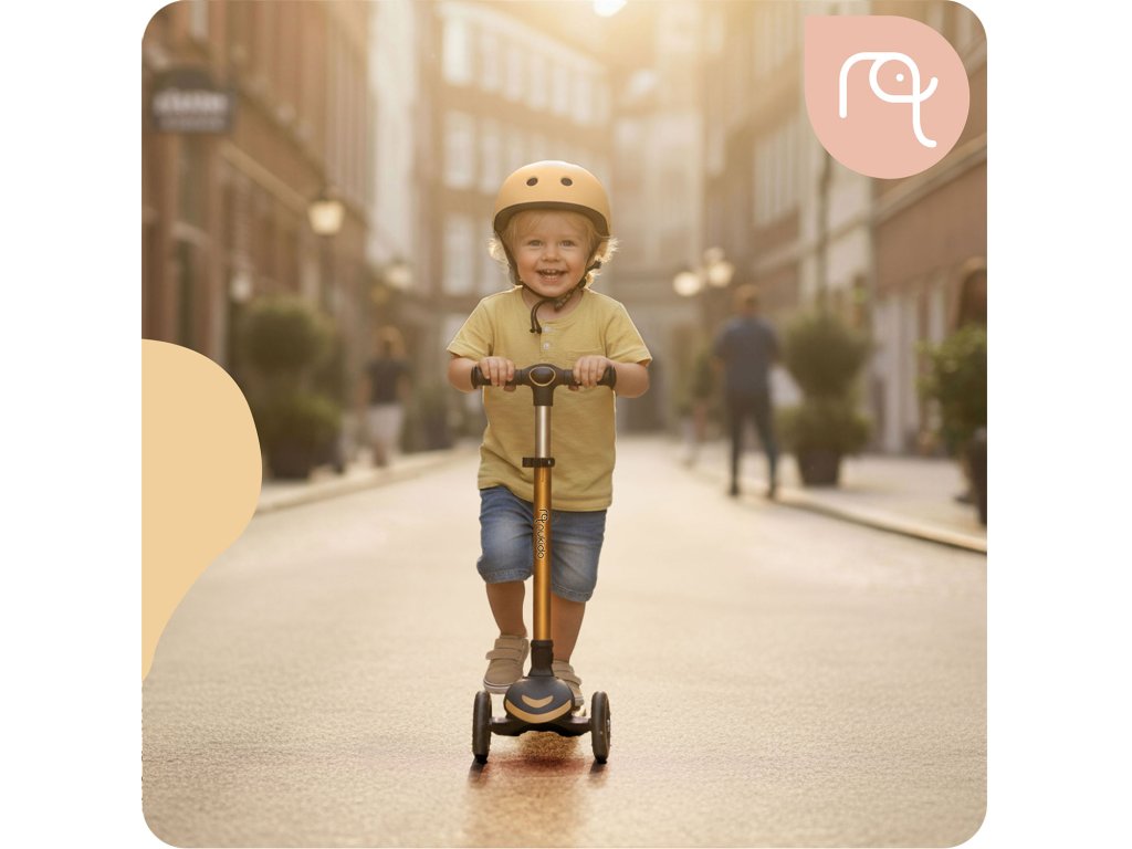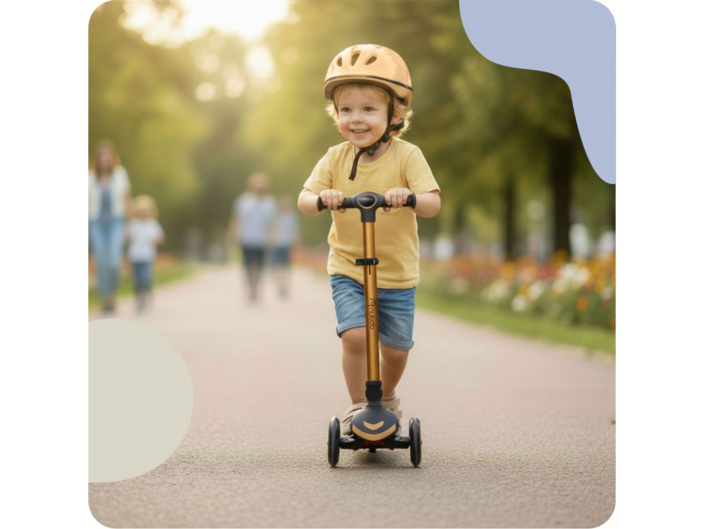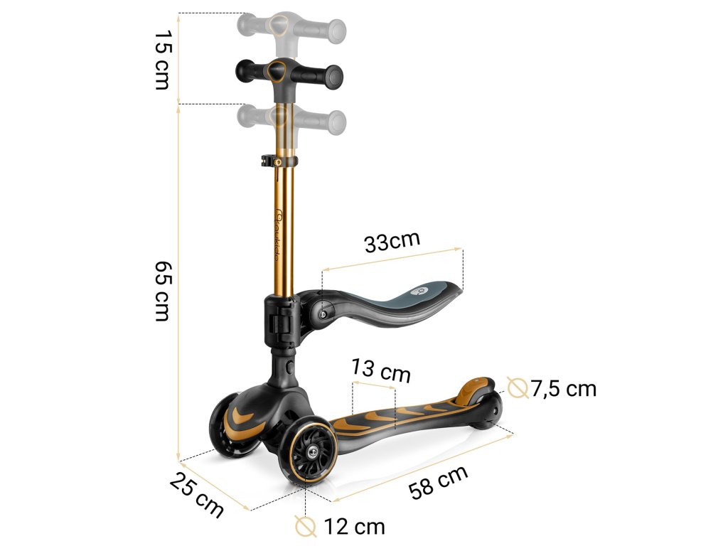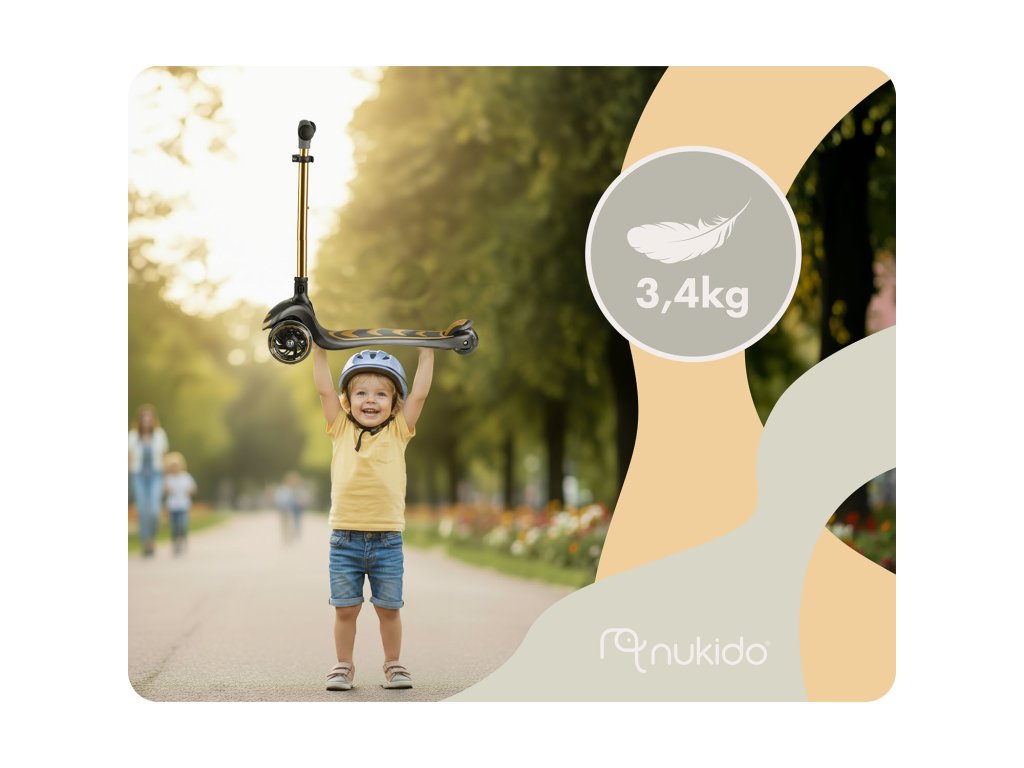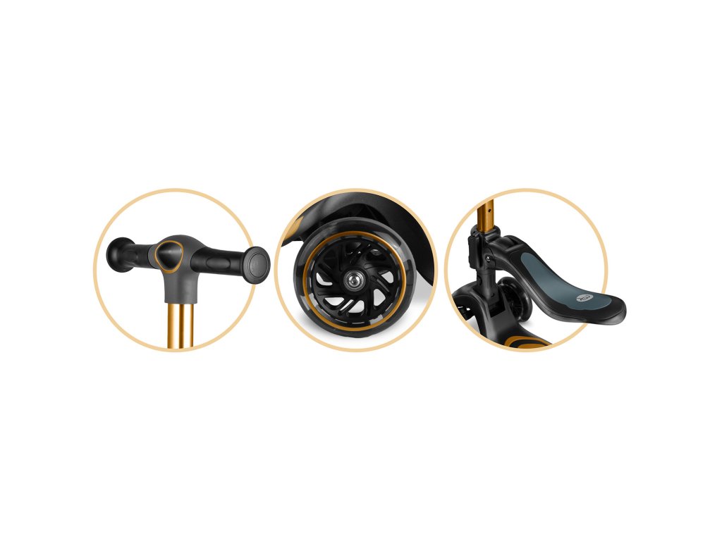 Háromkerekű gyermek roller egyensúlyozó üléssel Nukido Flippo - arany