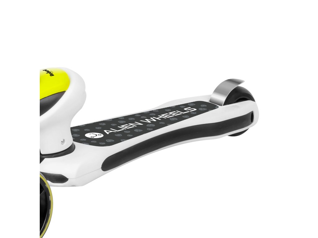 A gyermekeknek szánt robogó kiválasztásakor a magas biztonsági előírások elengedhetetlenek. Ezért az Alien Wheels roller széles csúszásmentes platformmal rendelkezik, hogy gyermeke lába ne csússzon el vezetés közben.