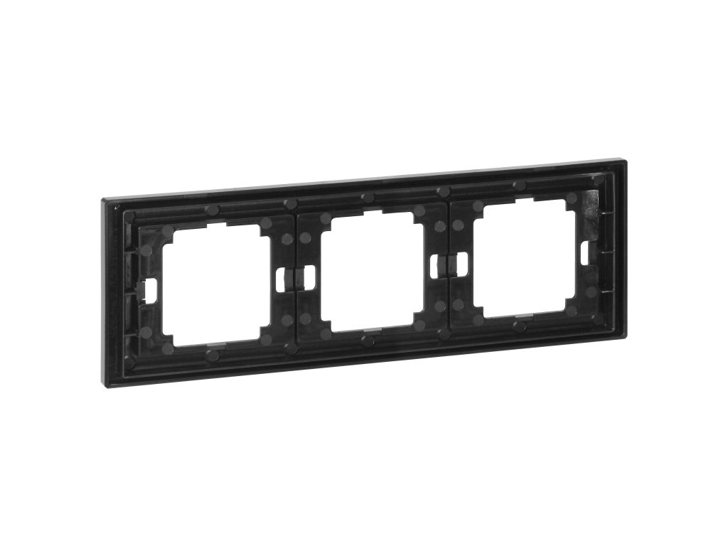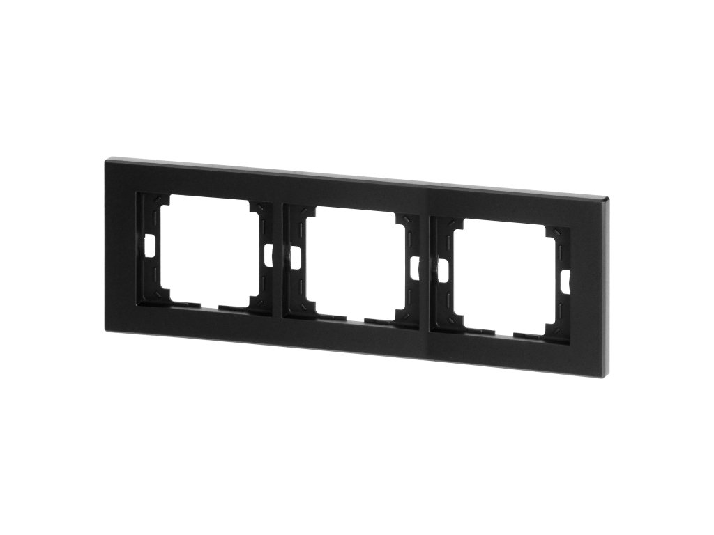 Modularis sorozat keretlemezes rendszerrel. Modern kapcsolók és aljzatok sorozata, amelyek harmonikusan illeszkednek az eredeti dizájner belső terekhez. A kapcsolók modern gyorscsatlakozási mechanizmusa (a vezetékek közvetlenül a testbe történő benyomásával csatlakoztatva) biztosítja a vezetékek biztonságos és stabil be- és kicsatlakoztatását. Az aljzatok hagyományos csavaros kapcsolattal vannak ellátva. A kapcsok belső kialakítása garantálja a 0,75 mm?-től 2,5 mm?-ig terjedő vezetékek biztonságos csatlakoztatását. Erős és robusztus szerelőlap hálózat és speciális rögzítőelemek, amelyek lehetővé teszik a dobozban való stabil és biztonságos telepítést.Hármas keret az ONYX sorozathoz. Beltéri használatra (IP20).