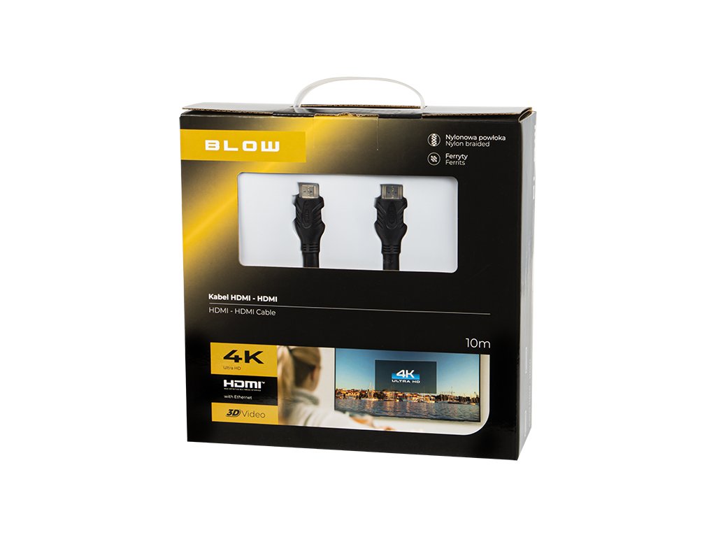 Specifikáció: - Csatlakozás: HDMI - HDMI - Dugó anyaga: fém (aranyozott) - Dugókód: fekete - HDMI szabvány: 2.0 - Maximálisan támogatott felbontás: 4096x2160 60Hz - Kábel hossza: 10m - Sávszélesség: 18Gbps