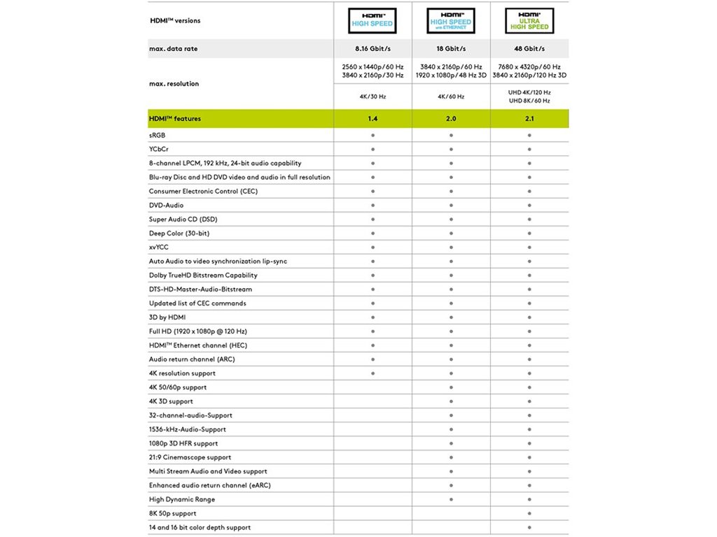 A HDMI™ csatlakozó biztosítja az összes népszerű funkciót, mint például a 21:9 CinemaScope képarány, ARC (audio return channel), HDCP vagy 3D tartalom 4K-ban Műszaki jellemzők: Jelátvitel - 4K Ultra HD 2160p (60 Hz) Támogatott színterek: - Deep Color (36 bit), x.