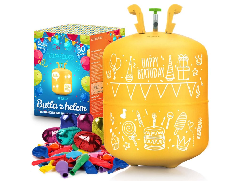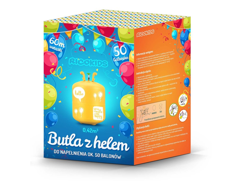 A palack kb. 50 db, kb. 23 cm átmérőjű lufi megtöltéséhez elegendő.