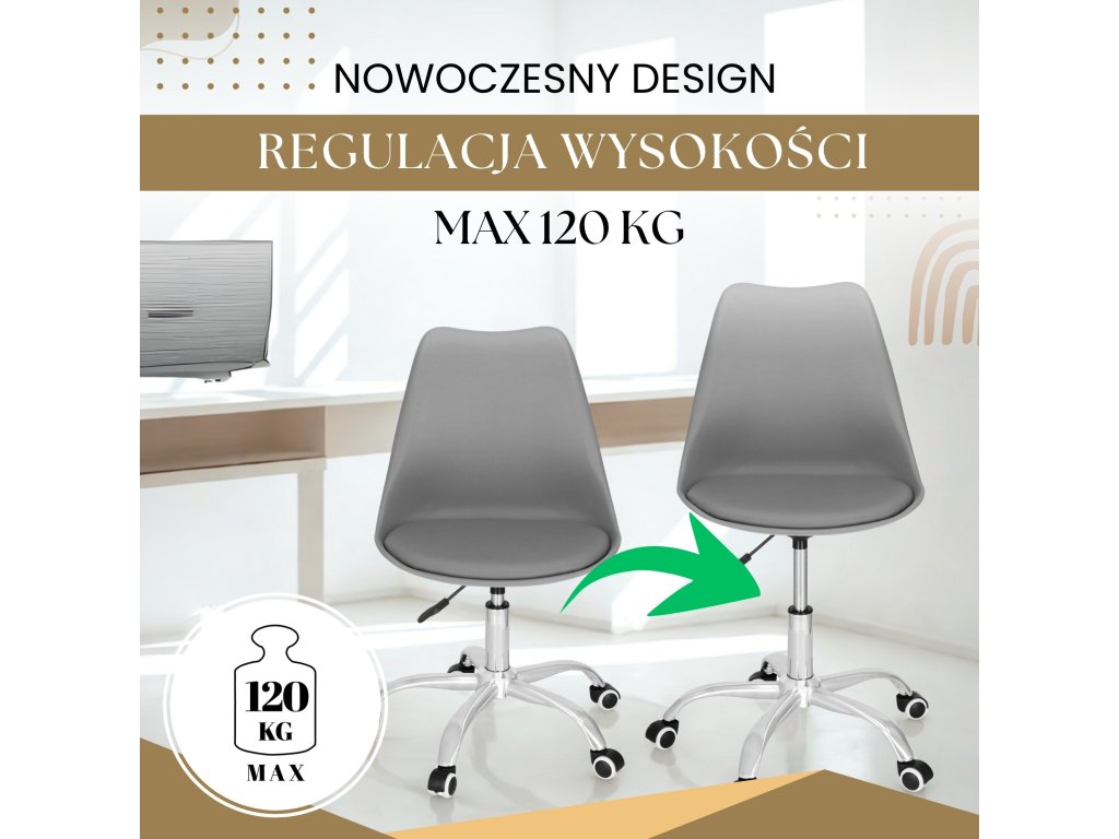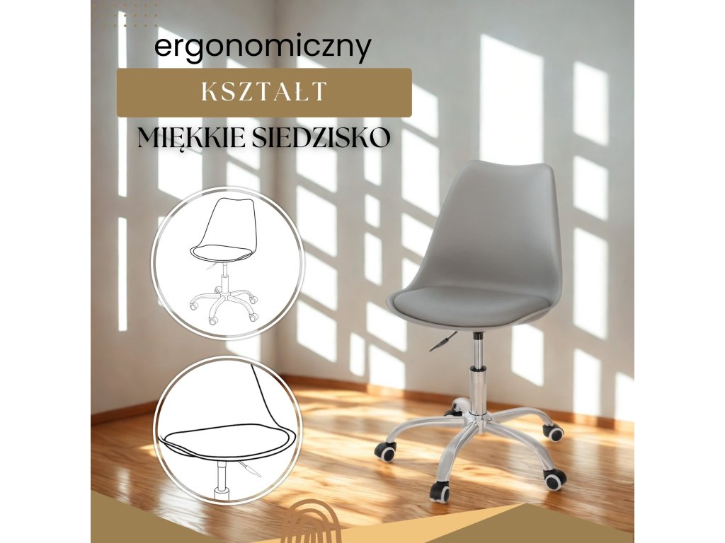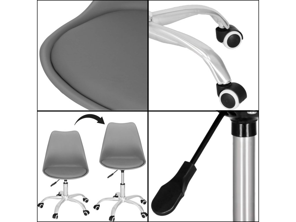 - A szék háttámlája merev műanyagból, az ülés puha töltettel, ökobőr borítással