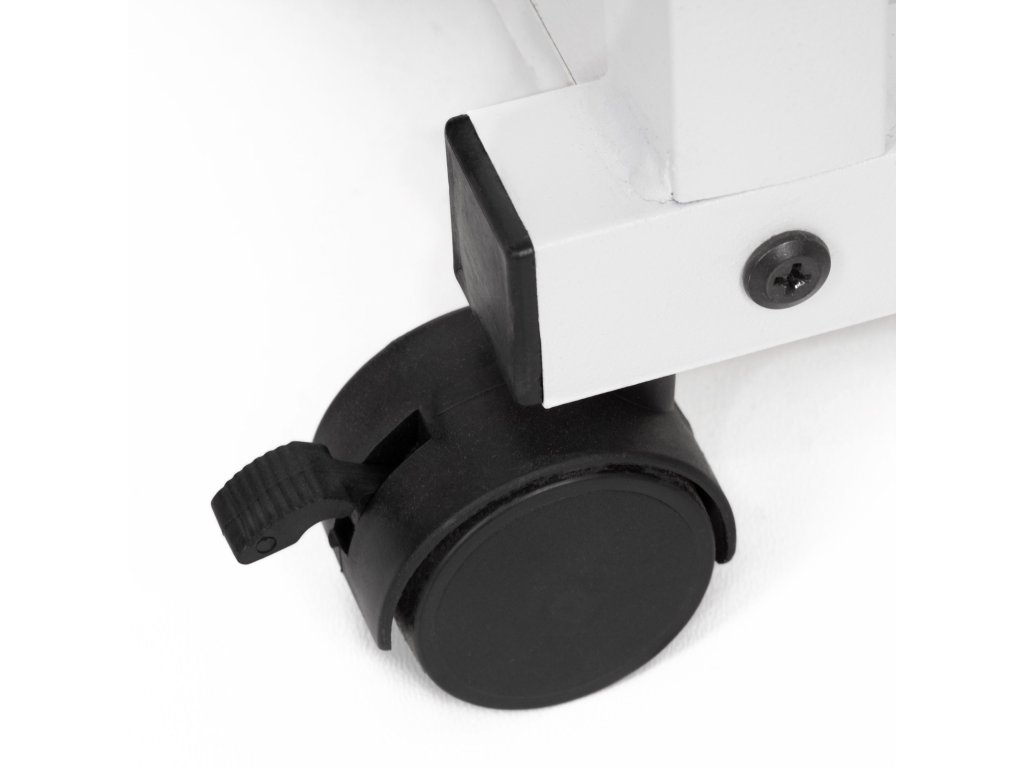 - Az íróasztal négy forgókerékkel van ellátva (tartozék), így könnyen mozgatható a bútor. Kettőjüknek záró funkciója van, lehetővé téve az íróasztal stabilizálását a választott helyzetben.