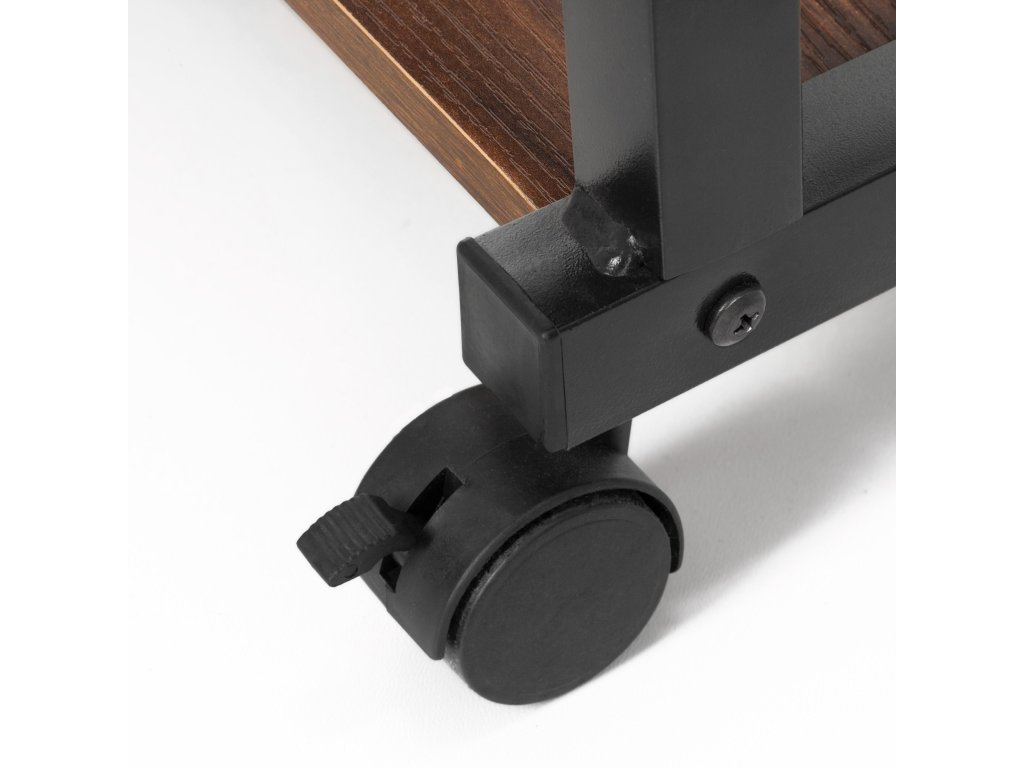 - A munkalap négy forgatható kerékkel van felszerelve (tartozék), amelyek megkönnyítik a bútor mozgatását. Kettőjük zárási funkcióval rendelkezik, lehetővé téve az íróasztal rögzítését egy kiválasztott pozícióban.