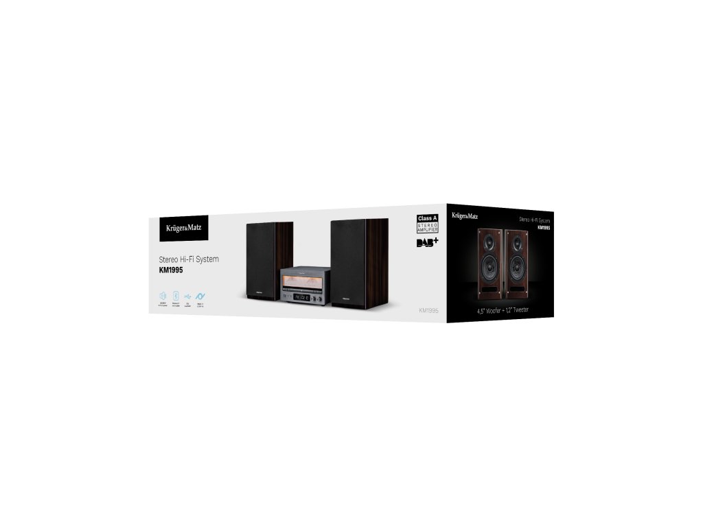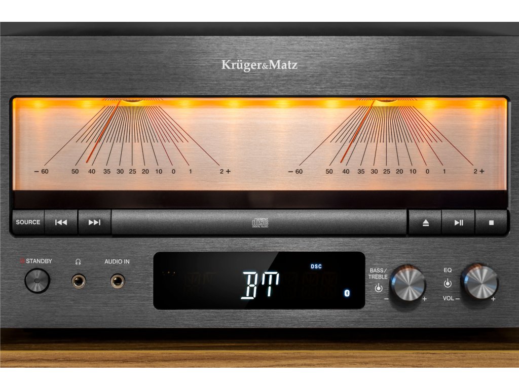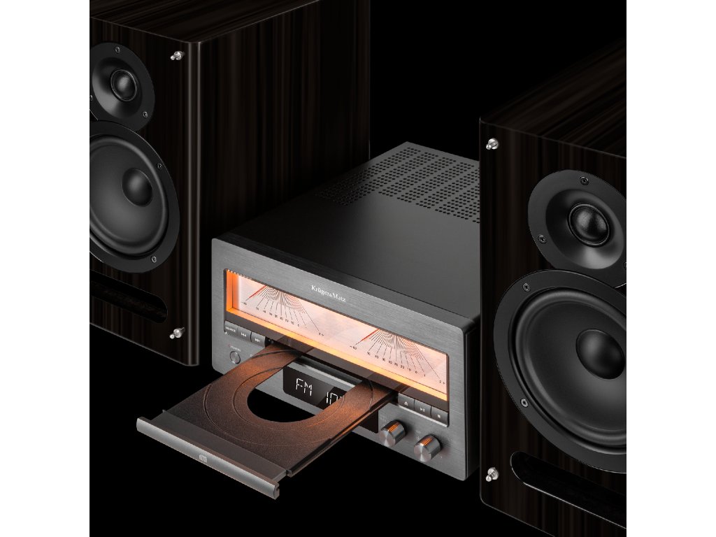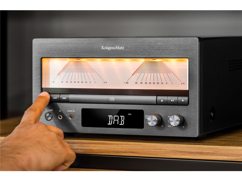 A KM1995 nemcsak a magas hangminőségével, hanem eleganciájával is lenyűgöz, amely tökéletes esztétikát garantál bármilyen belső térben. Az elülső oldalon található analóg hangszintmérő szintén egyedi retró jelleget kölcsönöz a készüléknek.