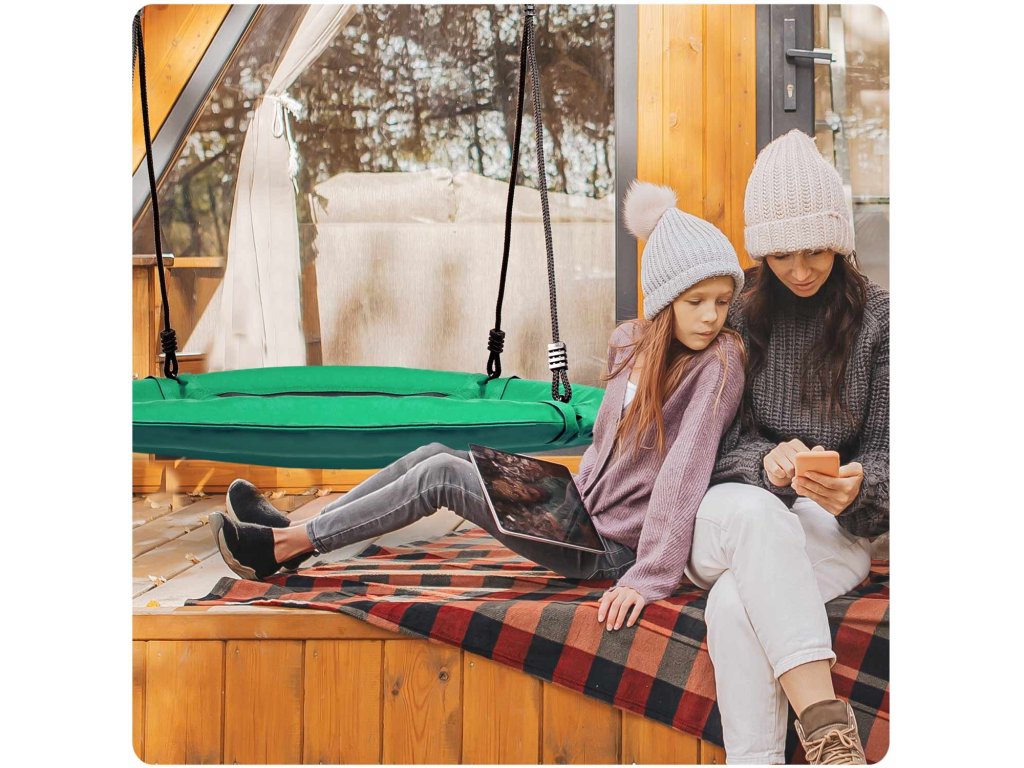 Hintázzon puha védőhabbal borított acélvázon, erős anyagból készült, többszörös varrással és vastag lógóköteleken. Biztosítja a biztonságot, a stabilitást és a tartósságot.